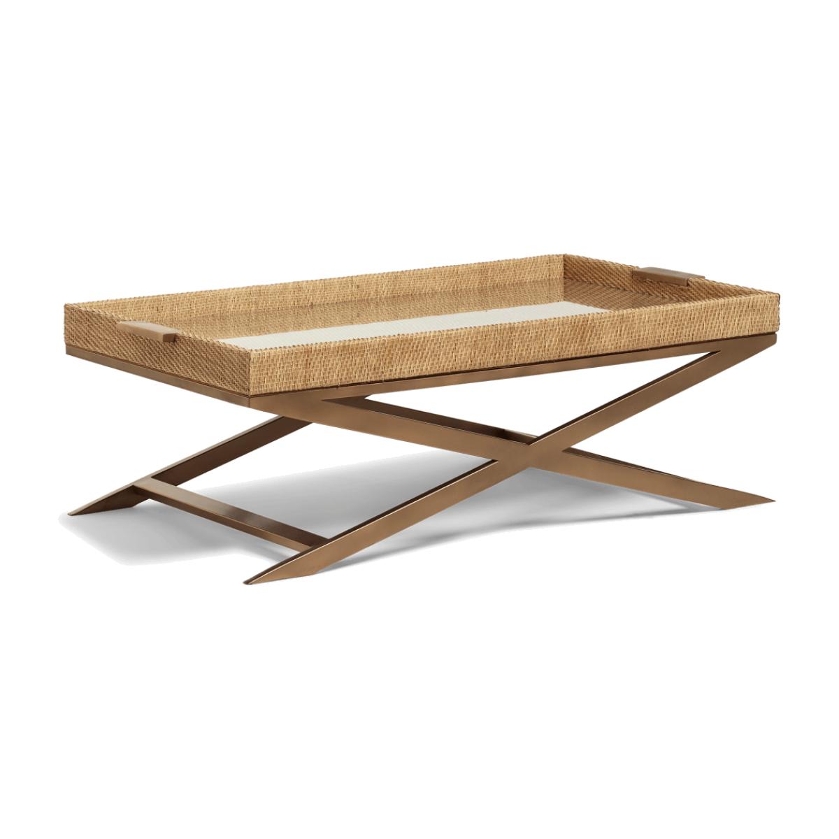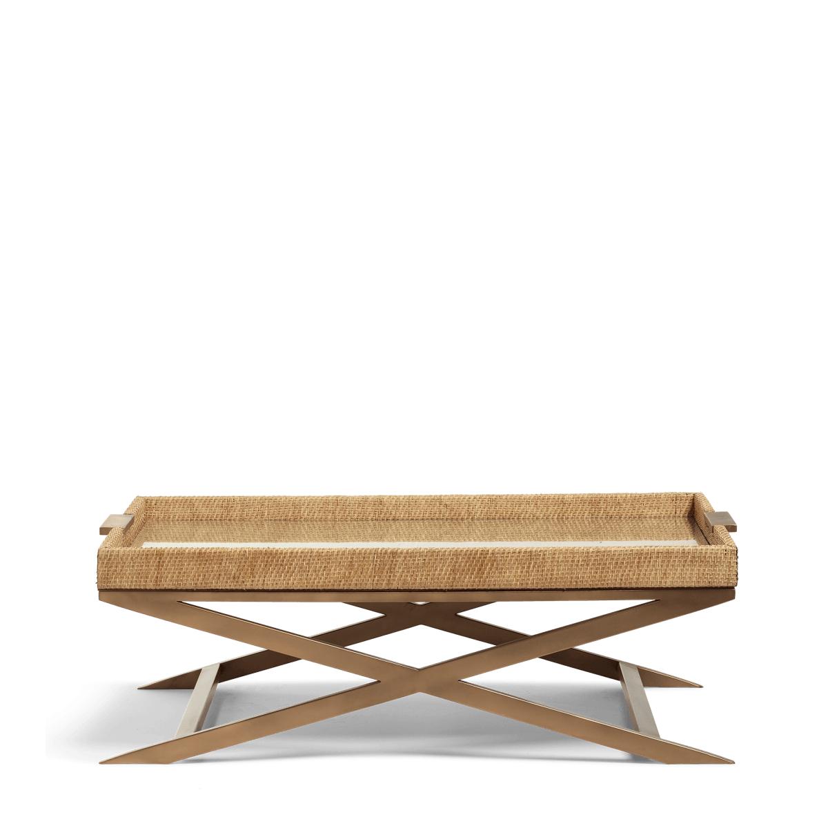 OKA, Sovannah Coffee Table - Sand, Coffee Tables, Glass/MDF Wood/Rattan/Stainless Steel