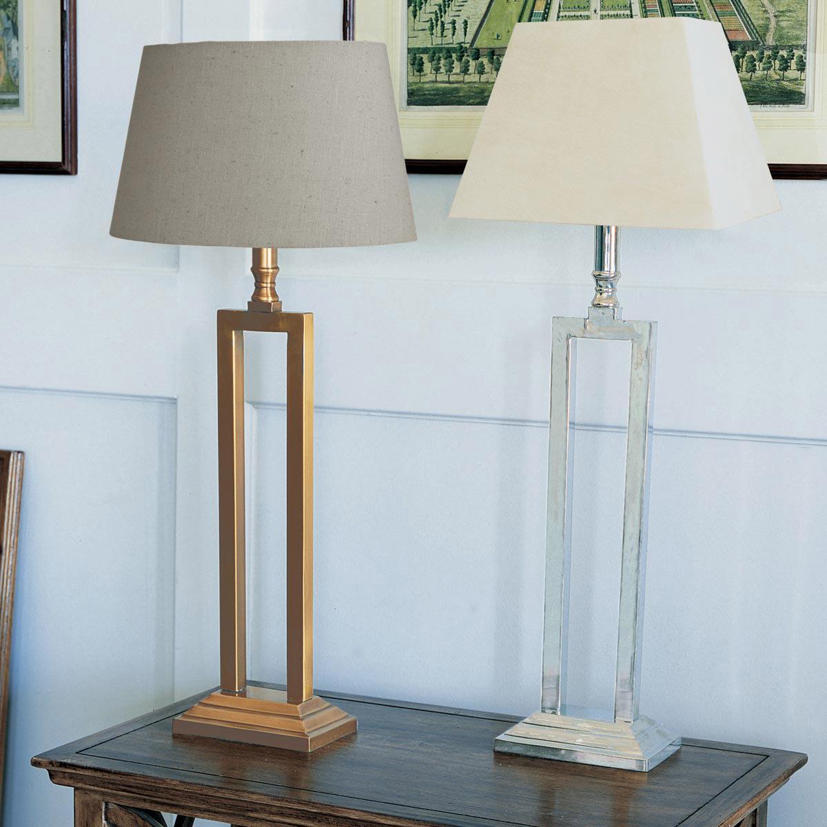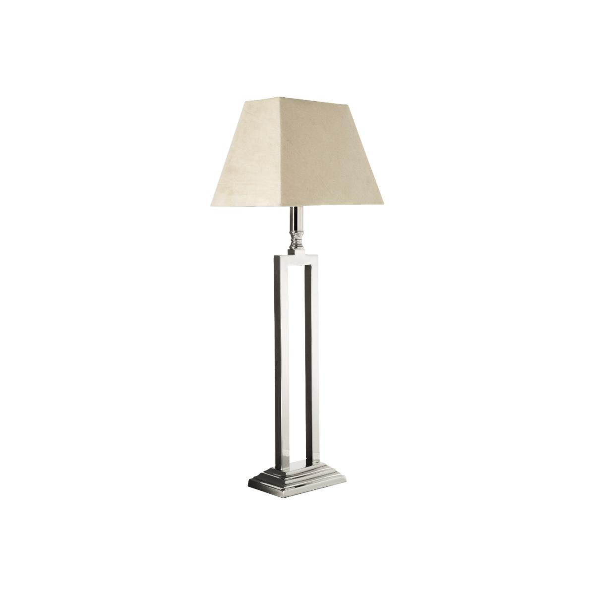 A 21st century take on the traditional column lamp, featuring a double column with a polished silver finish. Boasting a narrow profile and a linear silhouette, it is ideal for use in pairs on a slimline console in a minimal scheme. We recommend a 30-35cm diameter shade for use with this lamp.