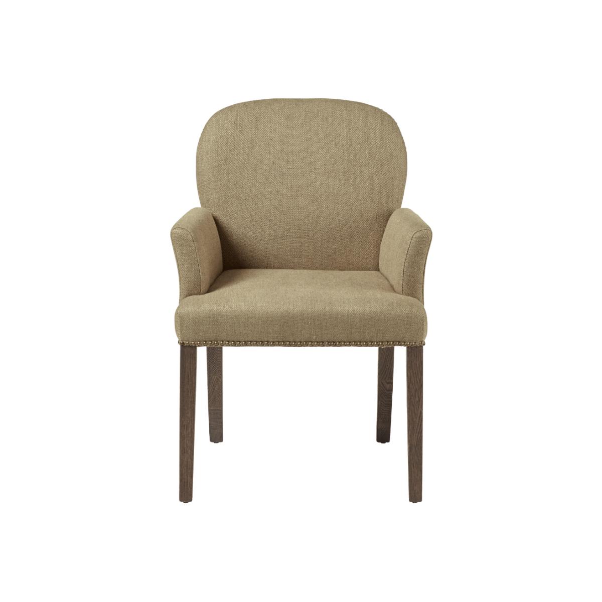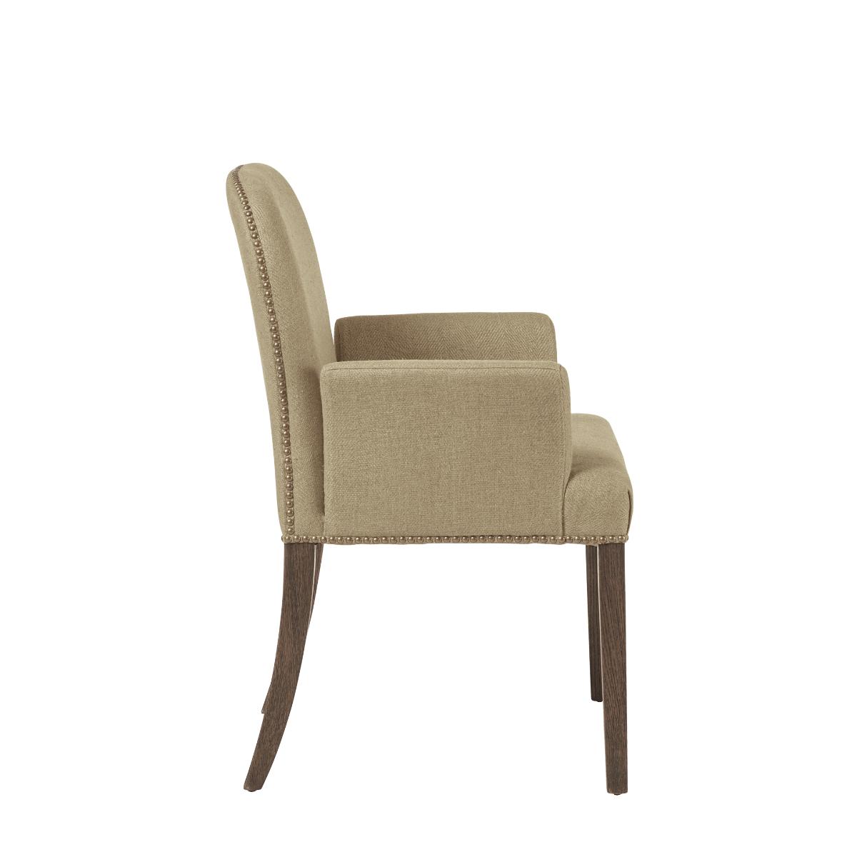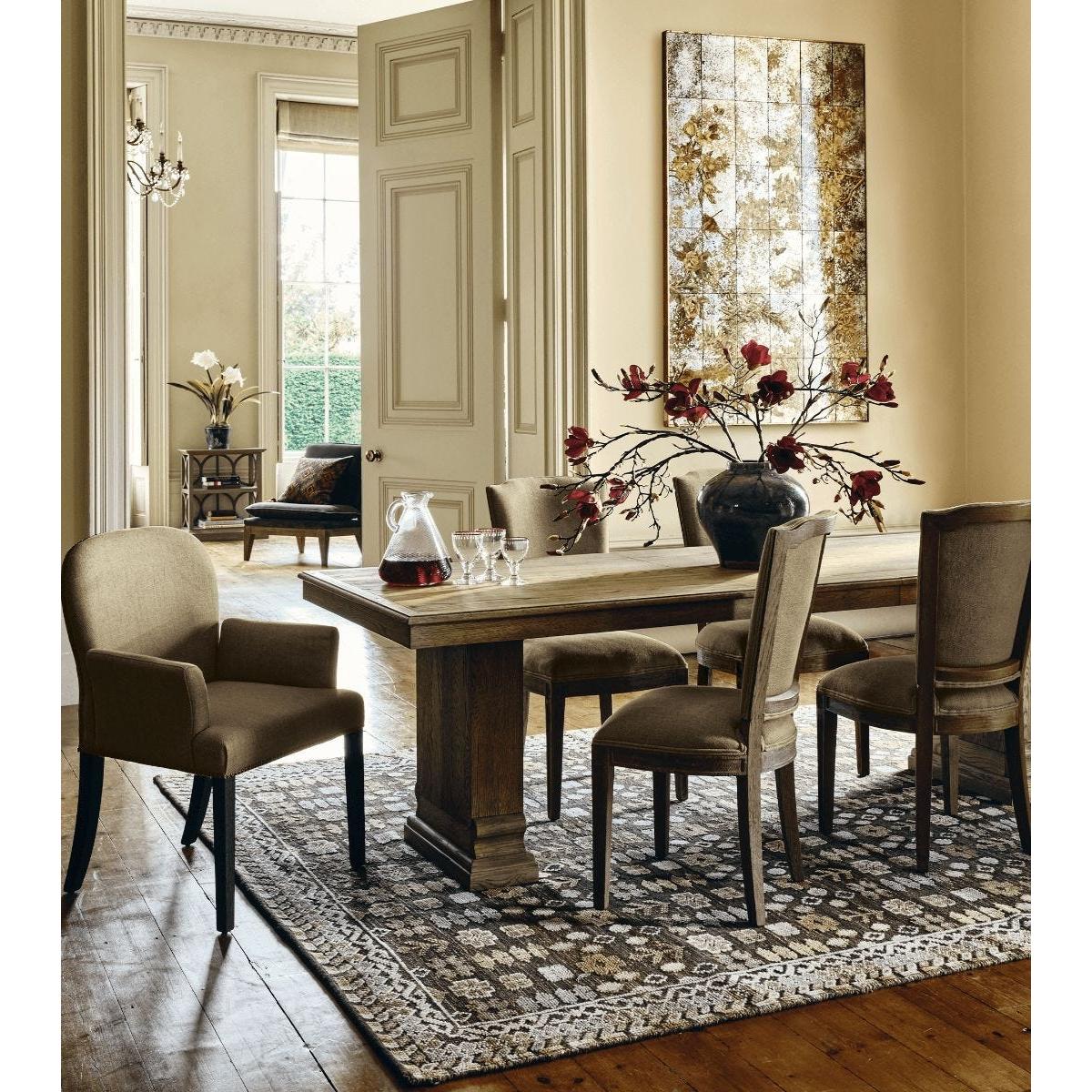 With its slender silhouette, studded border and useful back pull, the Stafford Dining Chair strikes a balance between dining room statement and staple. The original seat's created by OKA Co-Founder Annabel Astor when she was unable to find the perfect dining chair's proved so popular that we continue to add new colours and styles to the collection. One iteration that builds on the first design is this linen-upholstered dining chair with arms, which lends a soft elegance to a formal table set-up.