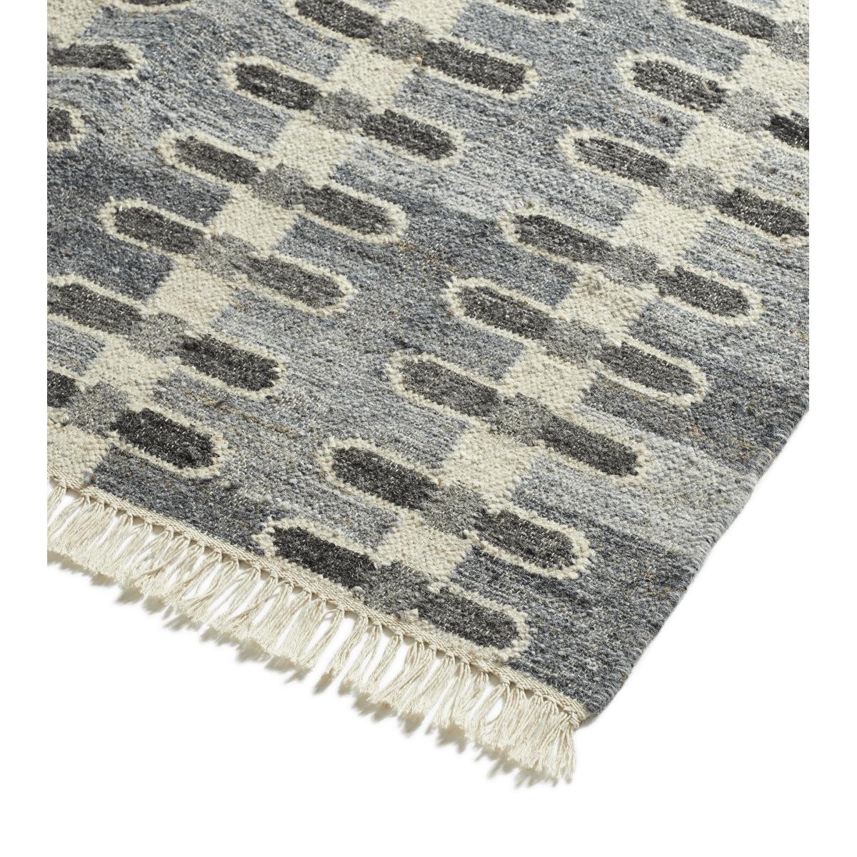 Named for its geometric pattern that resembles the sycamore seeds that spiral to the ground in autumn, our Sycamore Rug is handwoven on a vertical loom. The fabric is inspired by Scandinavian weaving styles, with dyed wool yarns woven into a cotton foundation to form the color and pattern. Due to this artisanal crafting process, each piece will have individual characteristics which add to its charm. This blue rug is our medium size, but it is also available in several other sizes and colors.