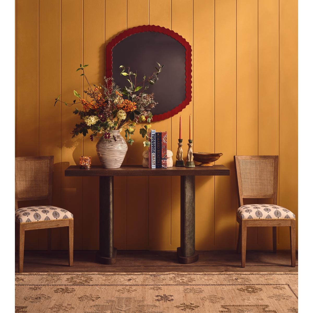 I love the OKA Talasa Mirror for its striking Chinese Red frame, which adds a vibrant, statement-making element to any room. It works particularly well in eclectic or contemporary interiors, where its bold colour can be a focal point. Practical styling tips include hanging it above a console or sideboard to reflect light and create a sense of space, or pairing it with brass or natural wood accents for a warm, inviting look. Its unique shape and vivid hue make it versatile enough to complement both minimalist and maximalist schemes, offering a pop of colour without overwhelming the aesthetic.