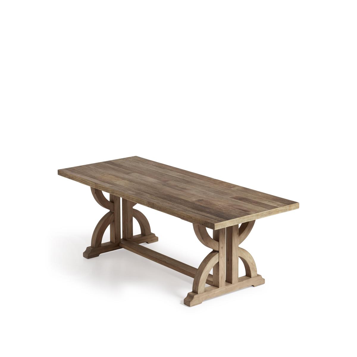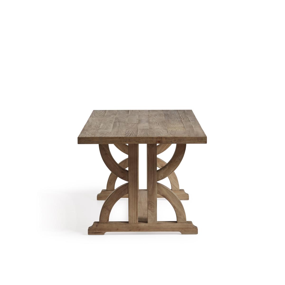 With legs reminiscent of an hourglass, lending it its name - Tempus being the Latin for time - this range of tables is made from recycled elm. Our artisans work with repurposed wood sourced from the beams, old doors, walls and floors of derelict homes in China, some of which are more than 100 years old - steeping each piece in history. This Dining Table is handmade and the recycled materials will result in each piece having individual characteristics. In contrast to some of our other reclaimed wood pieces, the Tempus withholds a lot of its material's original character and charm in the way that the wood has been put together with visible joins, colour and texture variation. It remains unstained for a natural finish.