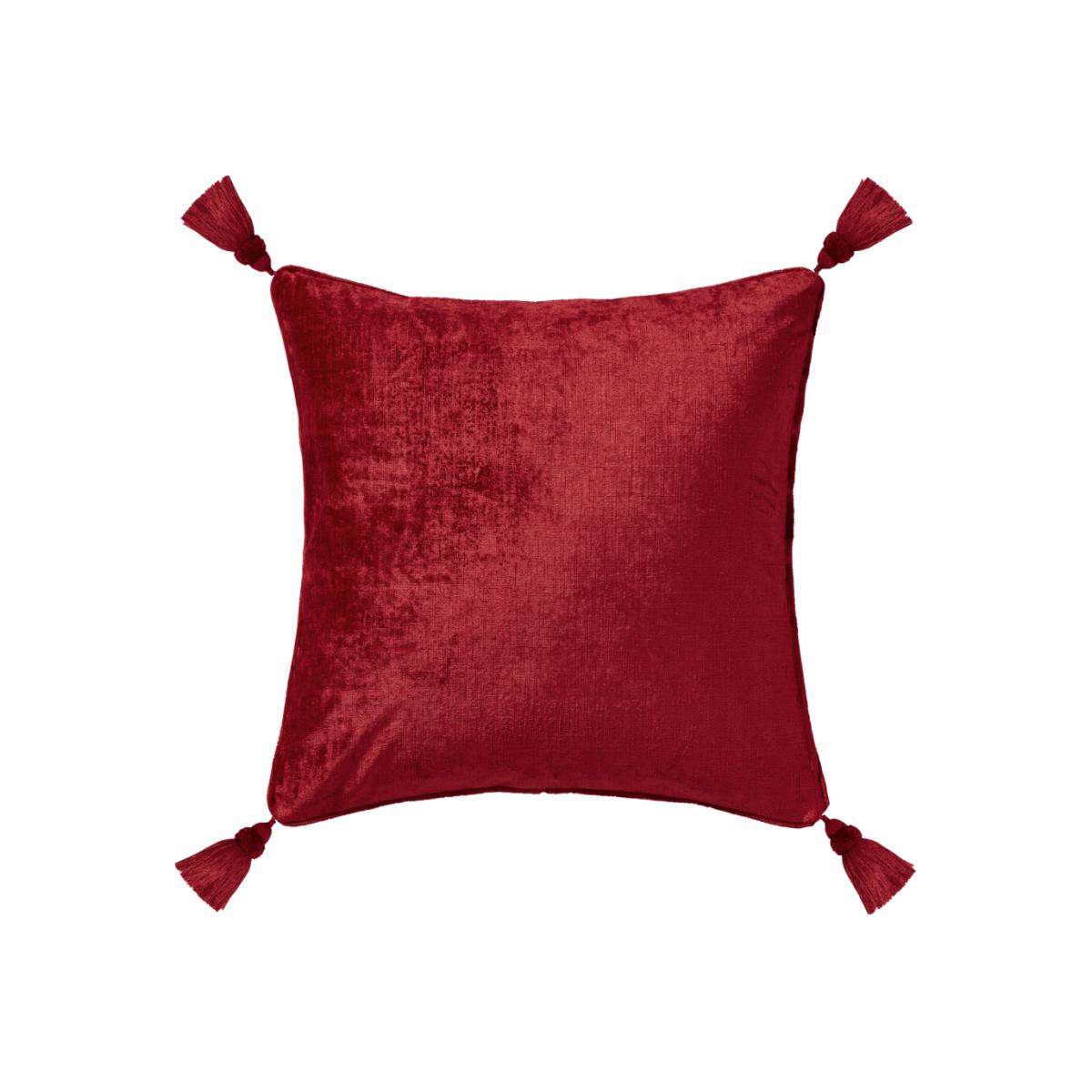 OKA, Textured Linen Velvet Pillow Cover with Tassels - Rubellite, Cushion Covers, Velvet, Plain
