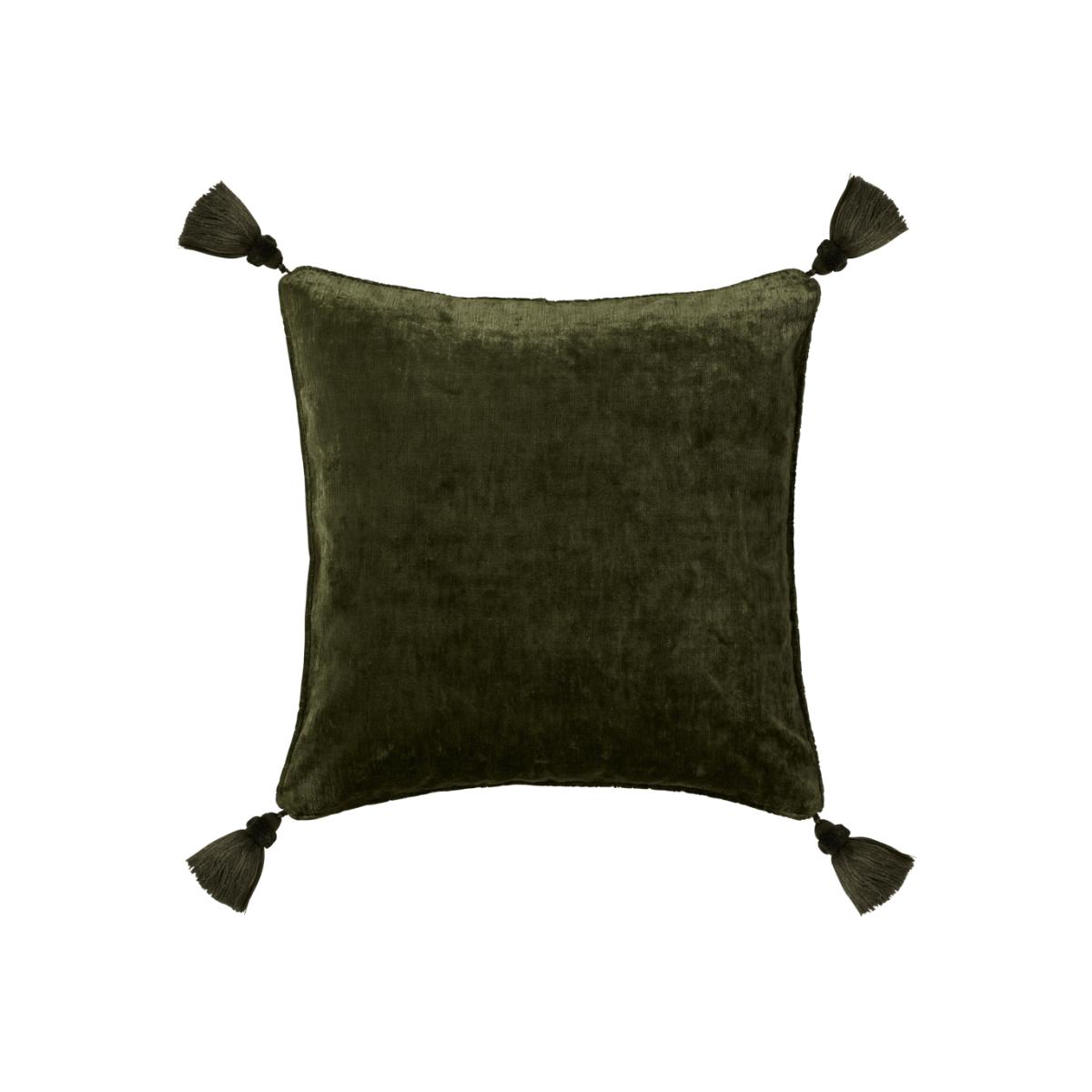 OKA, Textured Linen Velvet Pillow Cover with Tassels - Spruce, Cushion Covers, Velvet, Plain