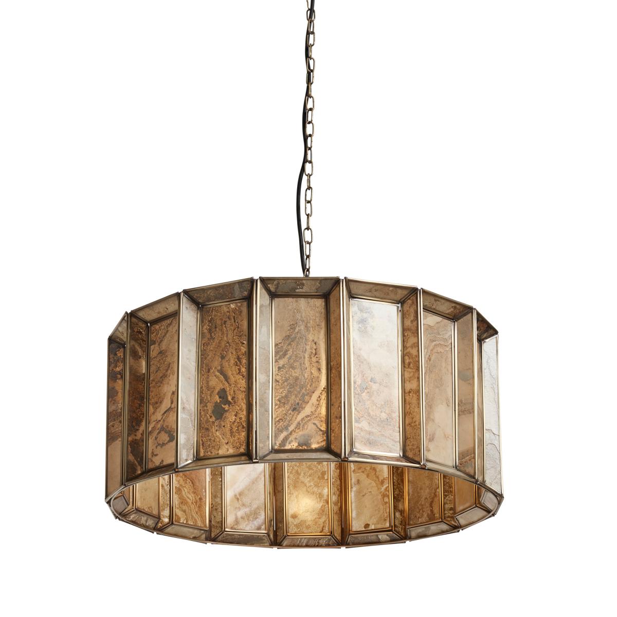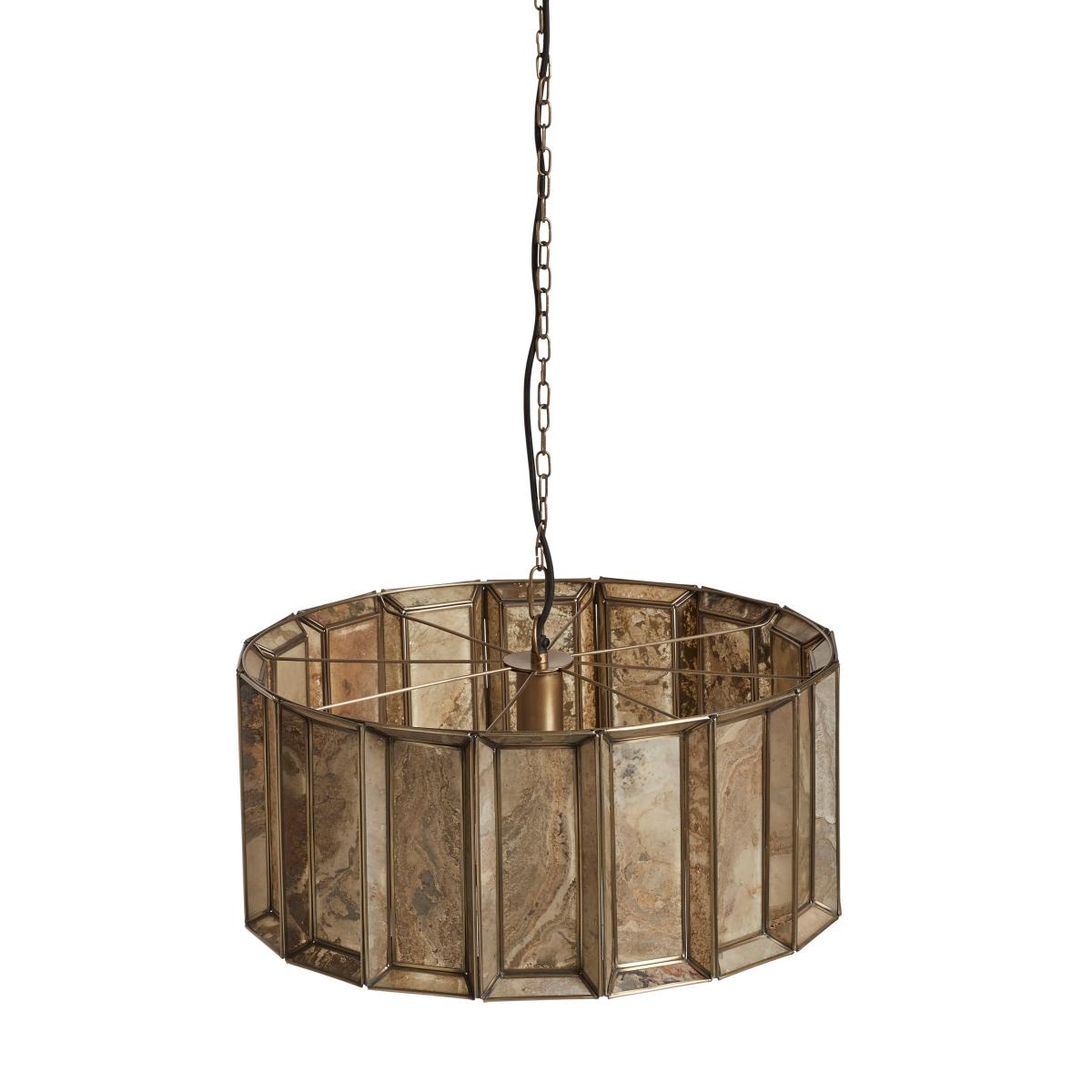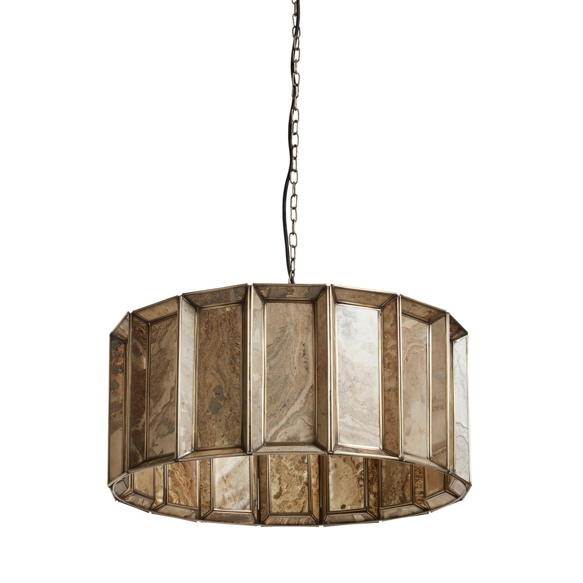 Torsten is made from a beautiful tan stone that’s delicately-shaved and hand-applied to the frame of the pendant to create a multi-faceted design that looks different according to whether the lamp is on or off. The antique-brass metal finish on the edges and chain add to its awe-inspiring aesthetics.