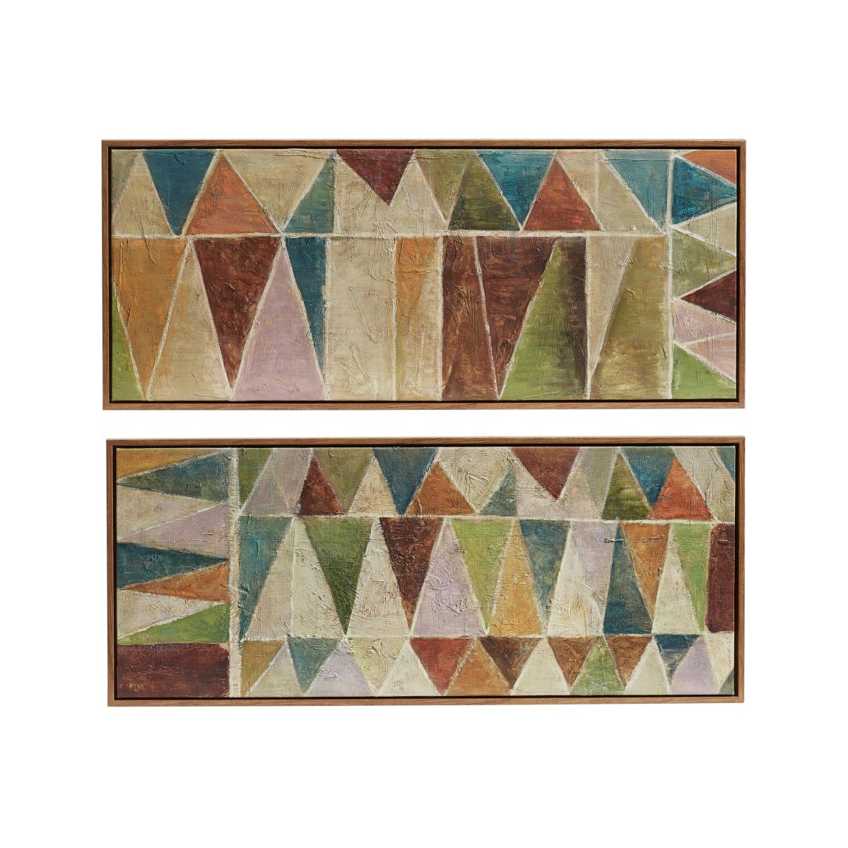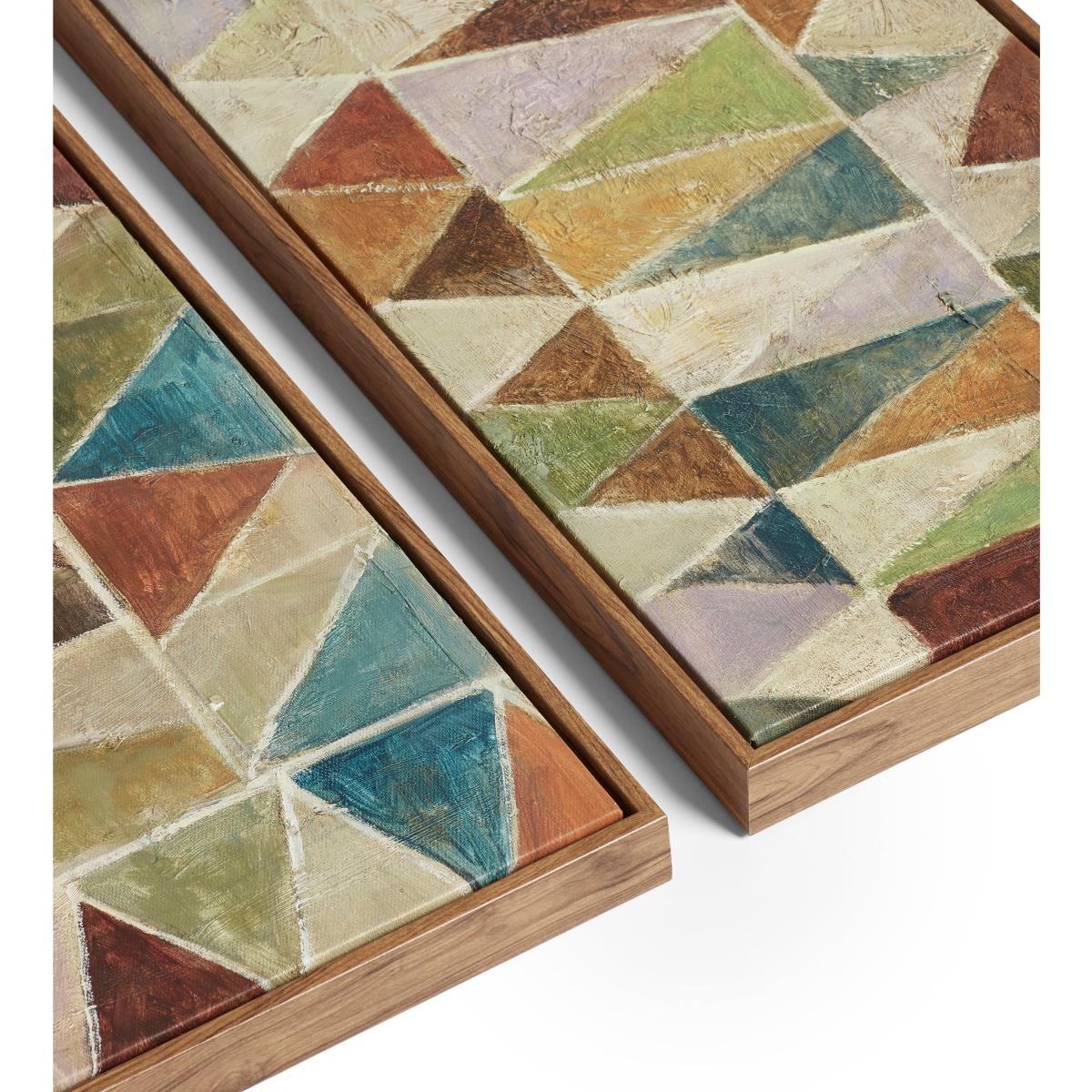 Our Trigono Hand-Painted Wall Art comes in a set of two and features colourful triangles set within natural wooden frames that complement both traditional and contemporary schemes. Because of the hand-painted technique, the surface of each artwork is textural for added depth and interest.