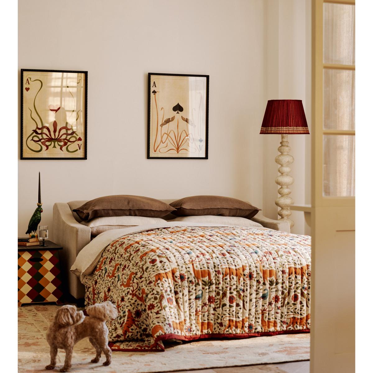 I love the OKA Troupeau Quilt for its versatile and understated pattern, which adds a cosy touch without overpowering a room. It works particularly well in relaxed, countryside-inspired interiors or layered over a simple sofa or bed in both contemporary and rustic settings. To style it effectively, consider pairing it with neutral cushions or throws to let the quilt's warm tones and intricate design stand out. Practical tips include folding it neatly over the arm of a sofa for easy access or draping it casually on a bed for an inviting, lived-in look. Its multi-layered pattern offers a touch of visual interest while maintaining a natural and calm aesthetic, making it a great all-rounder for adding texture and warmth to any space.