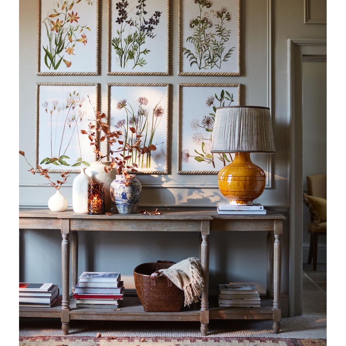 I love this console because of its warm, burnt oak finish that adds a touch of rustic charm to both traditional and contemporary interiors. It works well in hallways, living rooms, or behind a sofa, offering practical surface space while showcasing natural wood tones. For styling, I recommend keeping it simple with a few carefully chosen accessories-maybe a statement lamp, a vase of fresh flowers, or some curated books-to highlight its natural beauty without clutter. Its sturdy yet elegant design makes it versatile and easy to incorporate into various schemes, from laid-back farmhouse to more refined modern settings.