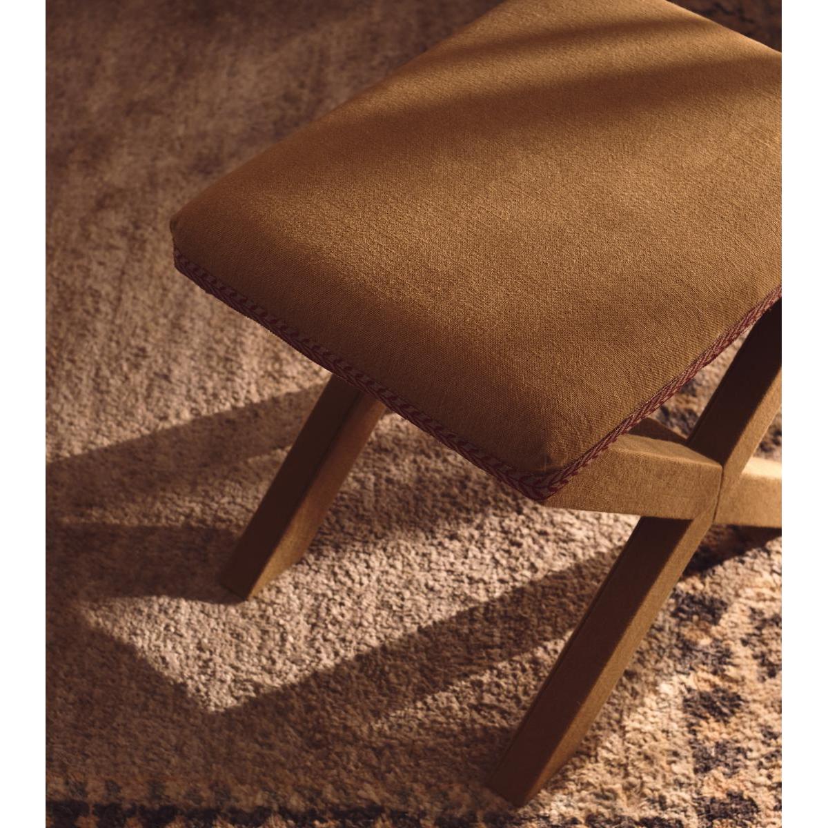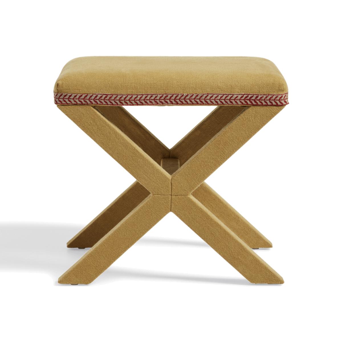 This crisscross staple can be used as an additional chair, makeshift luggage rack or stylish footstool anywhere in your home. Perfectly sized to fit under a dressing table, its earthy Dijon yellow linen upholstery and pretty trim will bring a sophisticated touch to your interiors.