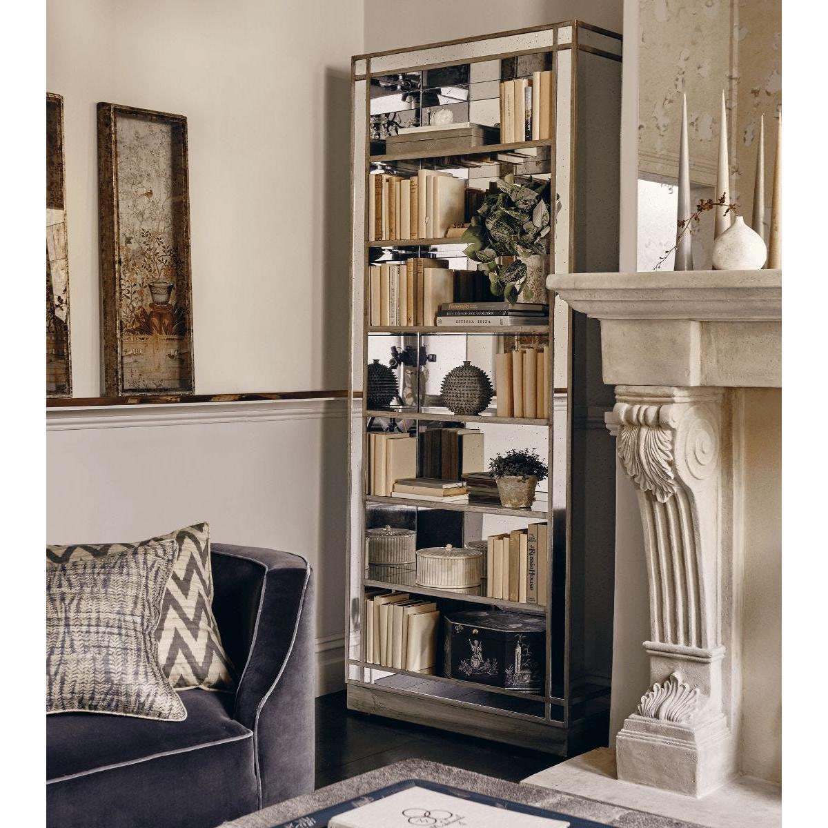 A marriage of two best-selling ranges, these stunning mirrored bookshelves combine the usefulness of our Ashmolean Shelves with the glamour of our Versailles Collection. The impressive handmade bookshelves feature six fixed mirrored glass shelves – each specially antiqued with hand-printed black dots, then edged with wood painted antique gold. Every inch of these shelves is mirrored – even the underside – to create a hall-of-mirrors effect. Please note: this piece is quite heavy and should be fixed to the wall with two L-shaped brackets at the top of the bookshelf, and attached using fittings.
