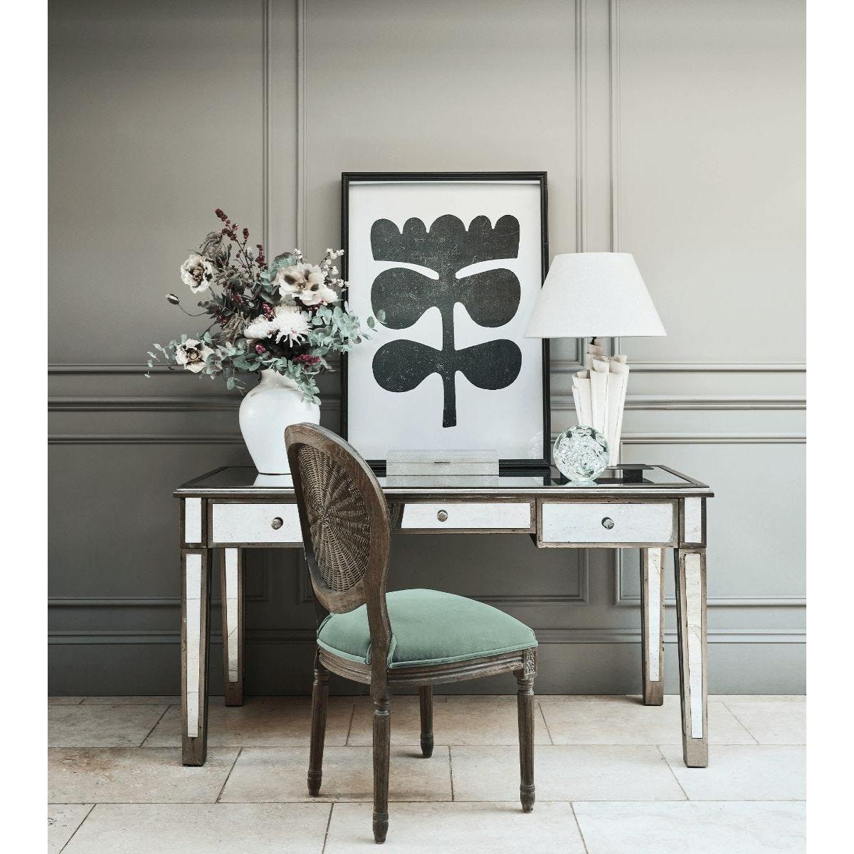 The OKA Versailles dressing table offers a beautifully aged, vintage feel with its antiqued mirror finish and elegant metal detailing, making it a versatile addition to both classic and contemporary interiors. It works particularly well in bedrooms styled with a mix of traditional and modern elements, adding a touch of sophistication without feeling overly ornate. Practical styling tips include pairing it with a mix of gilt and matte accessories, such as brass lamps or vintage glass jars, to highlight its antique charm. For a streamlined look, keep the surface decluttered with organised trays or baskets for jewellery and cosmetics. This piece can serve as a statement focal point or blend seamlessly into a well-curated, eclectic space.