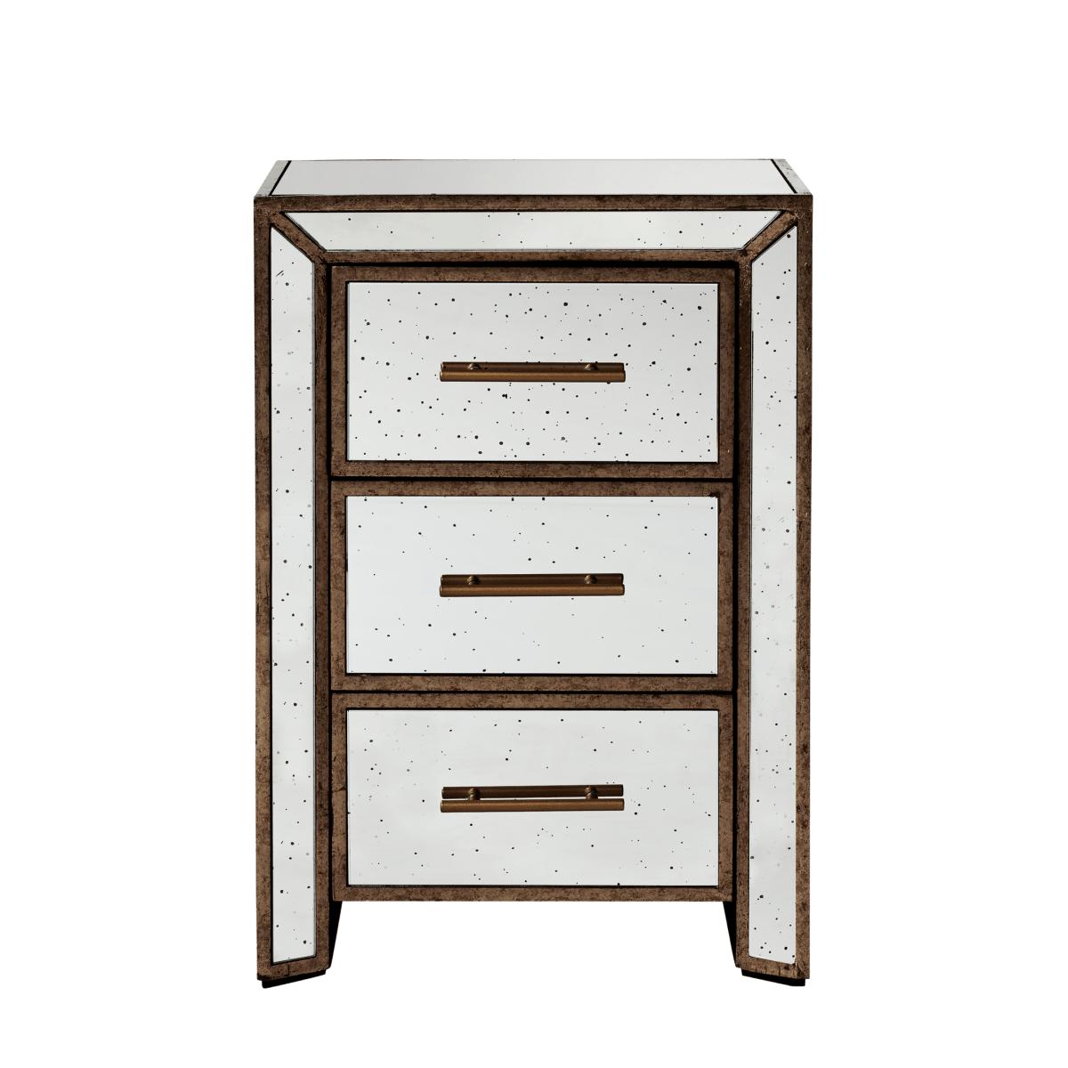 Both beautiful and practical, our Versailles Chest of Drawers is made from antiqued mirror glass panels set within frames distressed with an antique bronze colour, creating just the right amount of understated glamour.