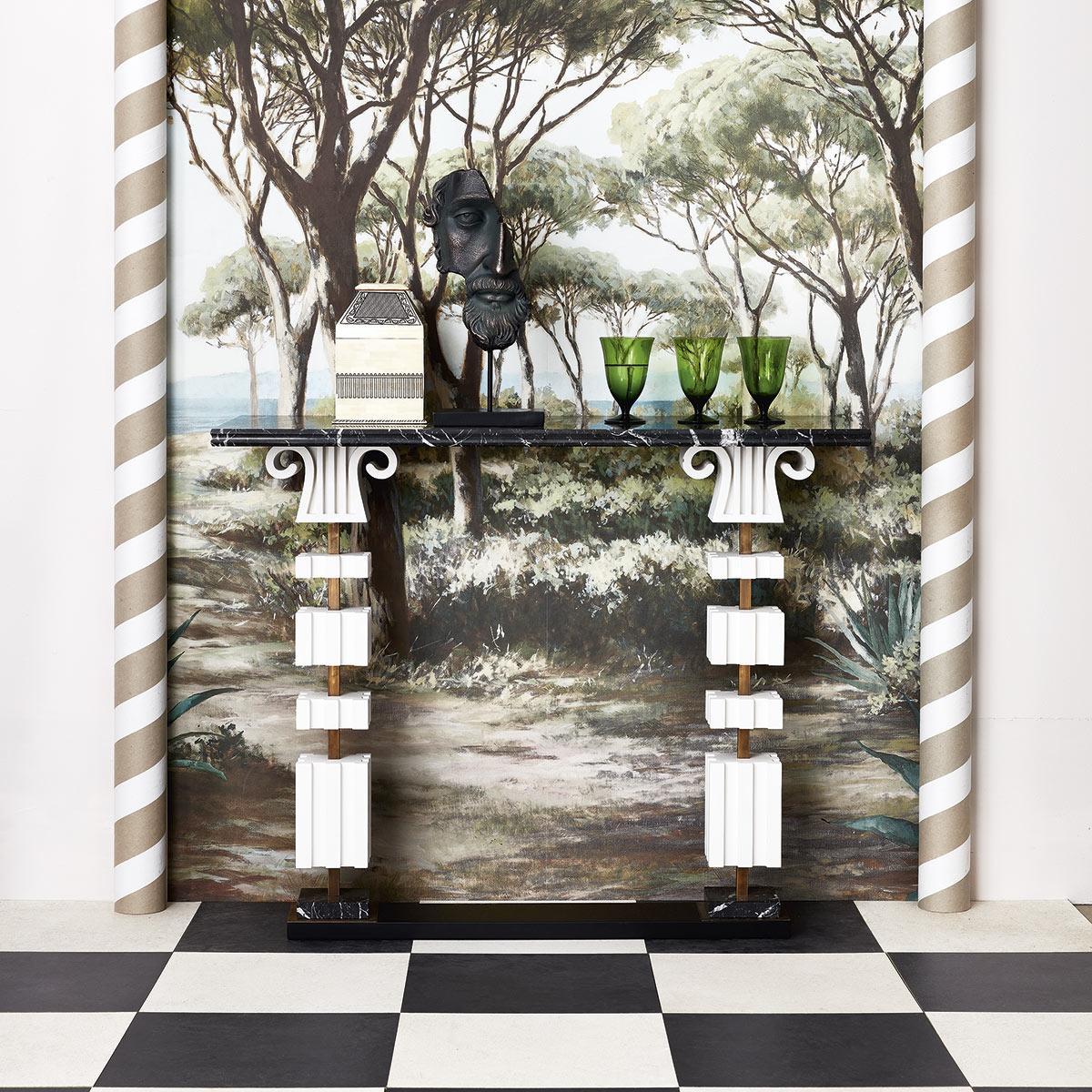 OKA, Vincent Darré X OKA Lyric Console Table - Black/White, Console Tables, Brass/Marble/Wood