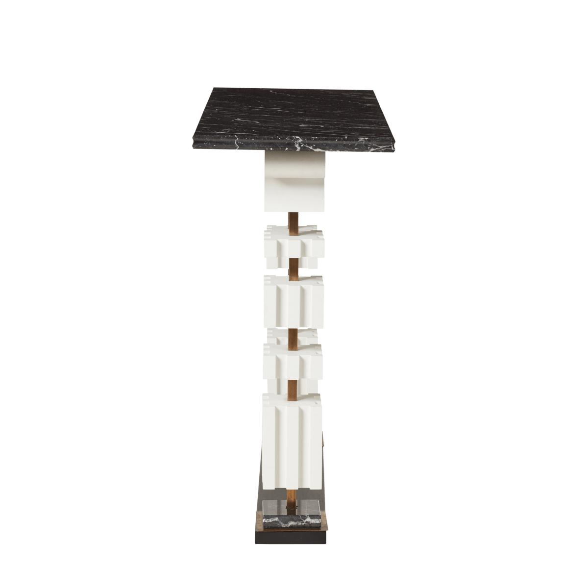 Balanced by two columns and topped with luxurious black marble, Lyric is a true statement piece. It’s a contemporary rendition of the ruins of 18th-century gardens. If you’re looking to infuse your home with a touch of classicism, this piece strikes an elegant chord.