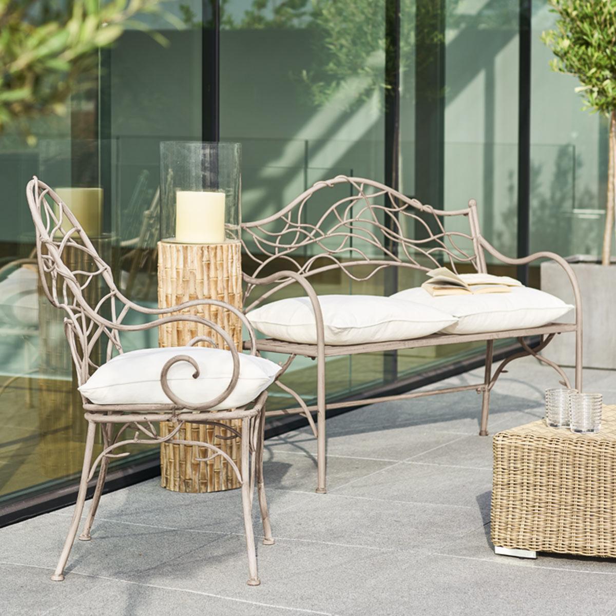For outdoor furniture that evokes a little whimsy, look no further than our Viticcio Garden Furniture Collection; the decorative set, made from twisted metal with a distressed finish, has the appearance of being covered in vines. Fairy-tale fans can maximise the collection's effect – and create a peaceful reading spot – by placing our Viticcio Garden Bench under a favourite tree.
