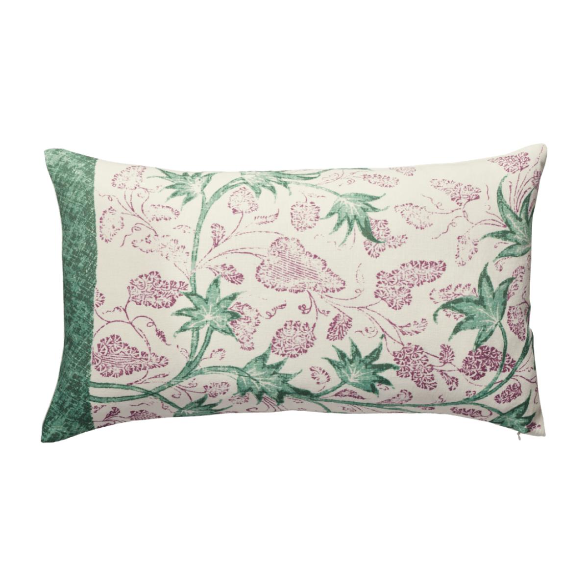 Taking antique Indian fabrics and paisley as her point of inspiration, Lucinda's cushion cover designs in The Kandini Collection are made by hand and printed on 100% linen. Our Vratati Cushion Cover features a spray of flowers, buds and leaves in purple and green.