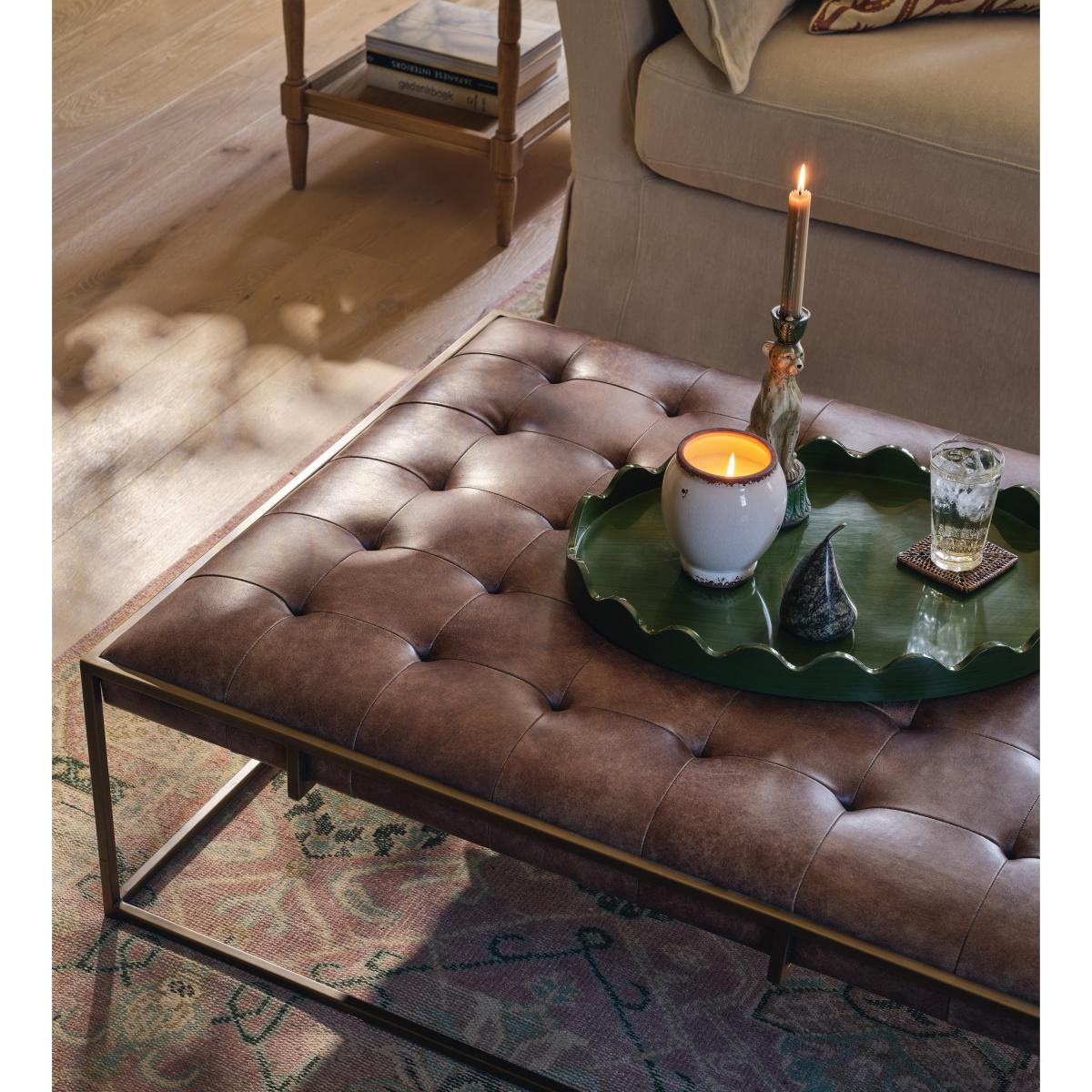 I love this coffee table/ottoman for its versatile, timeless design and rich aged hazelnut leather. It works well in both contemporary and more eclectic interiors, adding a touch of warmth and craftsmanship. Its dual function as a place to rest your feet or serve as a coffee table makes it highly practical, especially in relaxed living rooms or family spaces. For styling, consider layering with textured throw blankets or nearby a plush rug to highlight its tactile qualities. You could also pair it with neutral or earthy tones for a coordinated look, or add a statement tray on top for visual interest and organisation. It's a functional piece with a refined aesthetic that can anchor a space effortlessly.