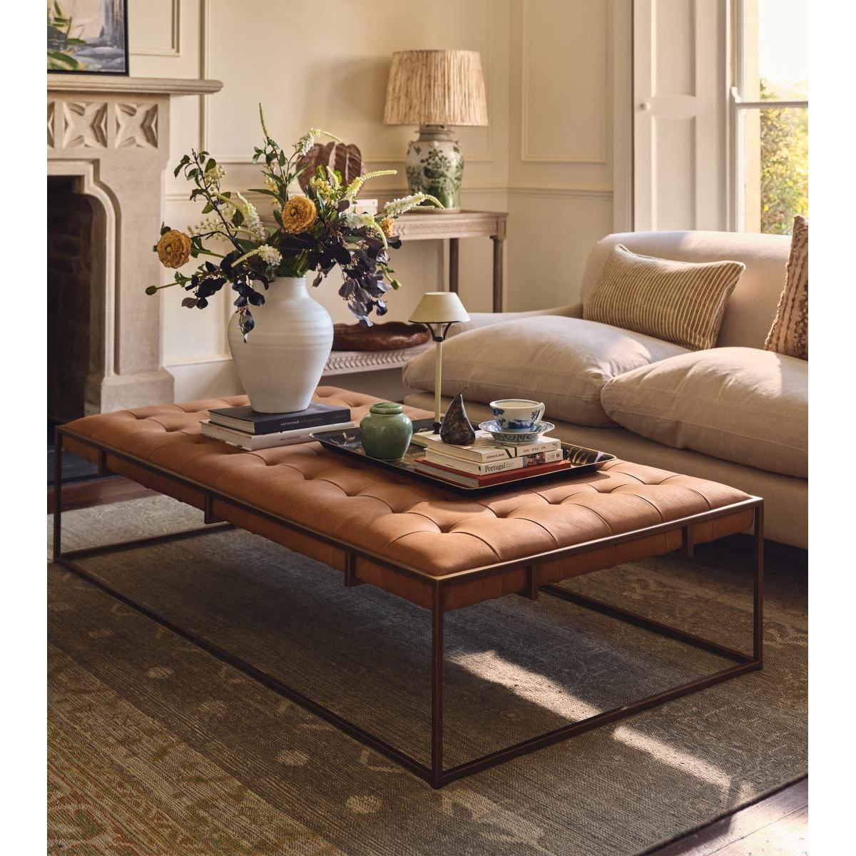 OKA, Wallace Coffee Table/Ottoman - Caramel, Ottomans, Leather/Metal, Floral
