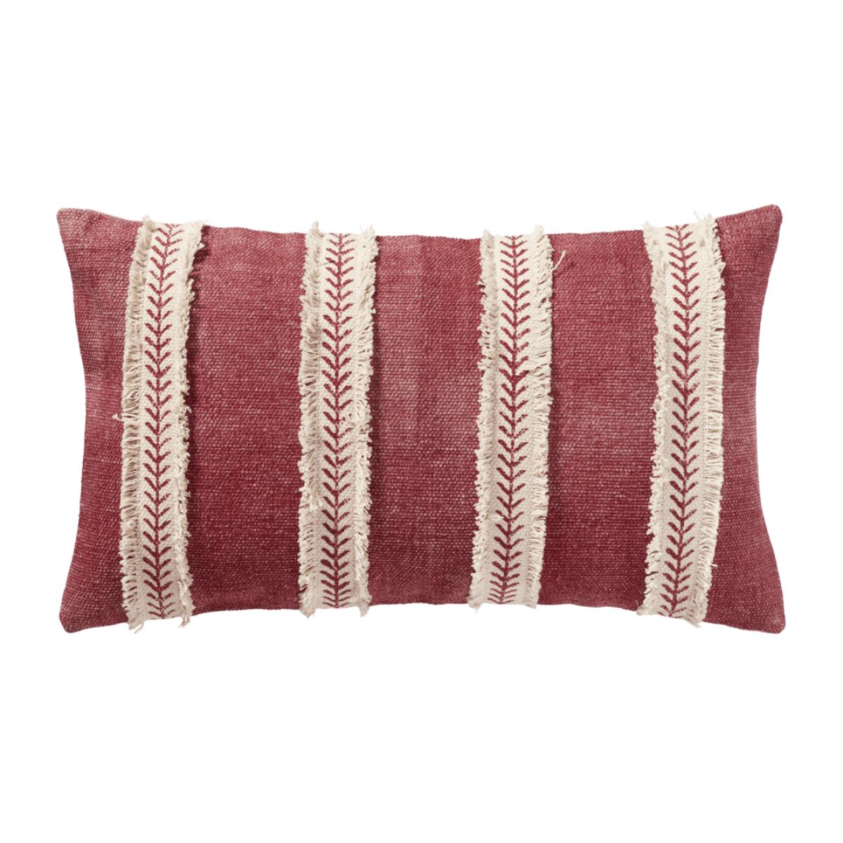 The Watelet cushion Cover is a beautiful combination of color, pattern and texture — a simple way to enliven your sofa or bedspread. Crafted from cotton it features block-printed thin fern-like stripes in pink on one side and plain white on the reverse.