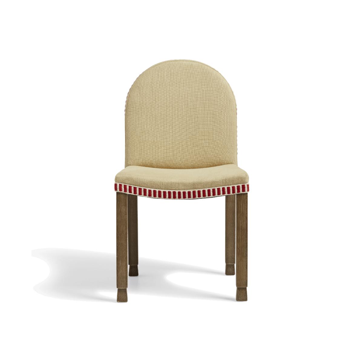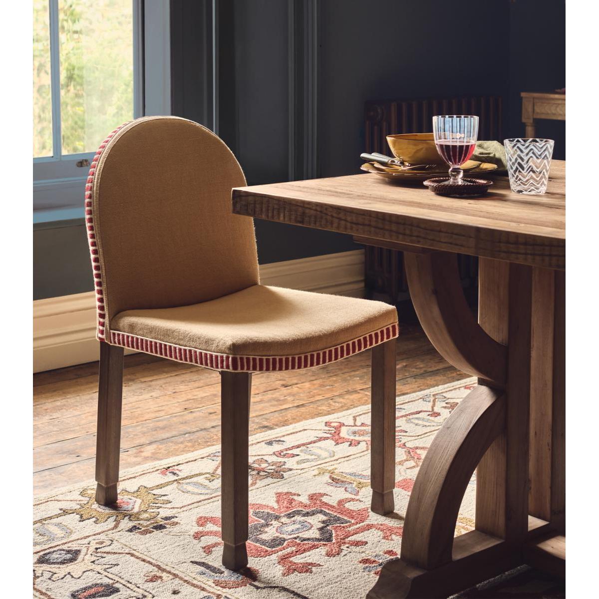 I’m really fond of the Weston chair for its quietly tailored hemp-linen upholstery and subtle stripe detail at the hem - it brings just the right amount of texture without shouting for attention. It sits equally well in a Scandi-inspired kitchen alongside pale oak or in a more traditional setting with painted cabinets and a weathered pine table. For styling, keep the palette soft and natural - think linen runners, a woven jute rug and simple brass candlesticks - then layer in fresh greenery or a bunch of garden roses to add a touch of colour.