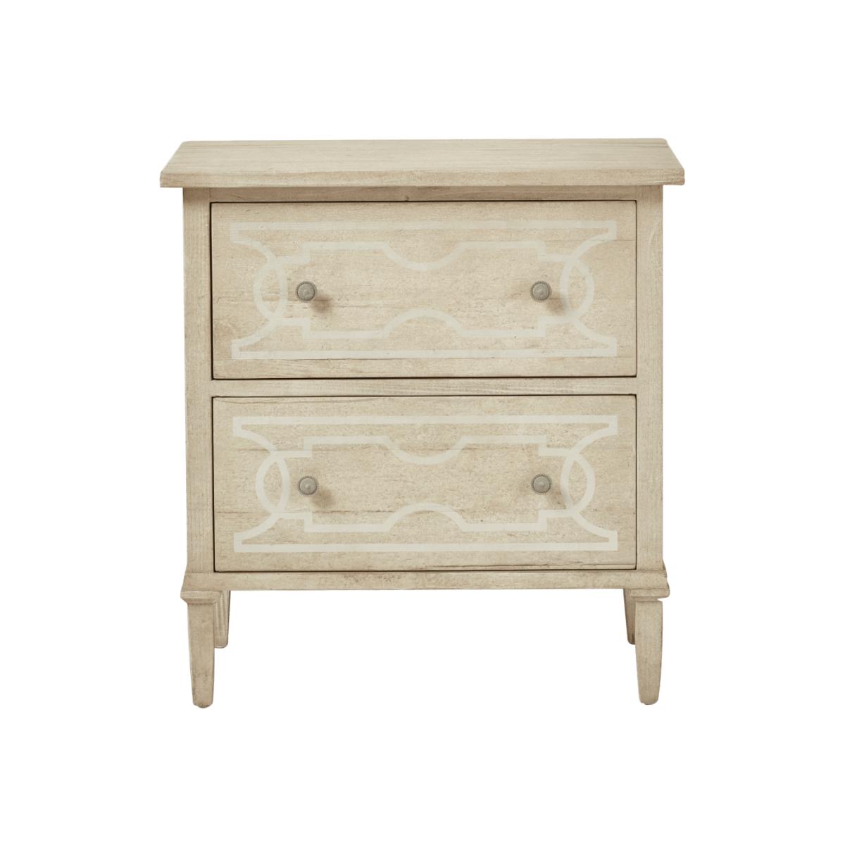 What it lacks in size, this petite chest of drawers certainly makes up for in character. Named after an English poet credited with introducing us to the sonnet, this pretty painted design has a clear structure: two drawers with decorative handles and painted interiors. Anything stored within this piece will be encased in style.