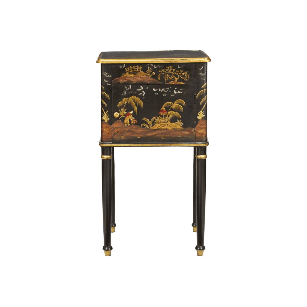 A welcome addition to our Chinoiserie Collection, the neat Xin Bedside Cabinet is both wonderfully decorative and very useful. Look beyond the three sides and top surface, which are hand-painted with traditional Chinese scenes in gold leaf, and you will discover neat storage; a drawer and small cupboard with a fixed internal shelf. The glass top is a neat, practical way to ensure the decorative details stay pristine, too.
