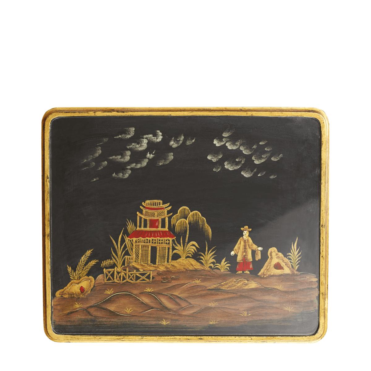 I’m a fan of this black lacquered side table for its nod to chinoiserie and those slender, gilt-tipped legs - it instantly lifts a corner without overwhelming it. It sits equally well in a modern minimalist scheme (adding a touch of warmth and pattern) or alongside more traditional upholstered pieces, where its fine detailing can echo other metallic accents. Styling-wise, keep the top uncluttered: a small sculptural lamp or a single glossy ceramic vase works perfectly. On a bedside or beside an armchair, it’s just the right height to hold your evening read and a slender candle, while the reflective finish catches light and brings depth to darkened zones.
