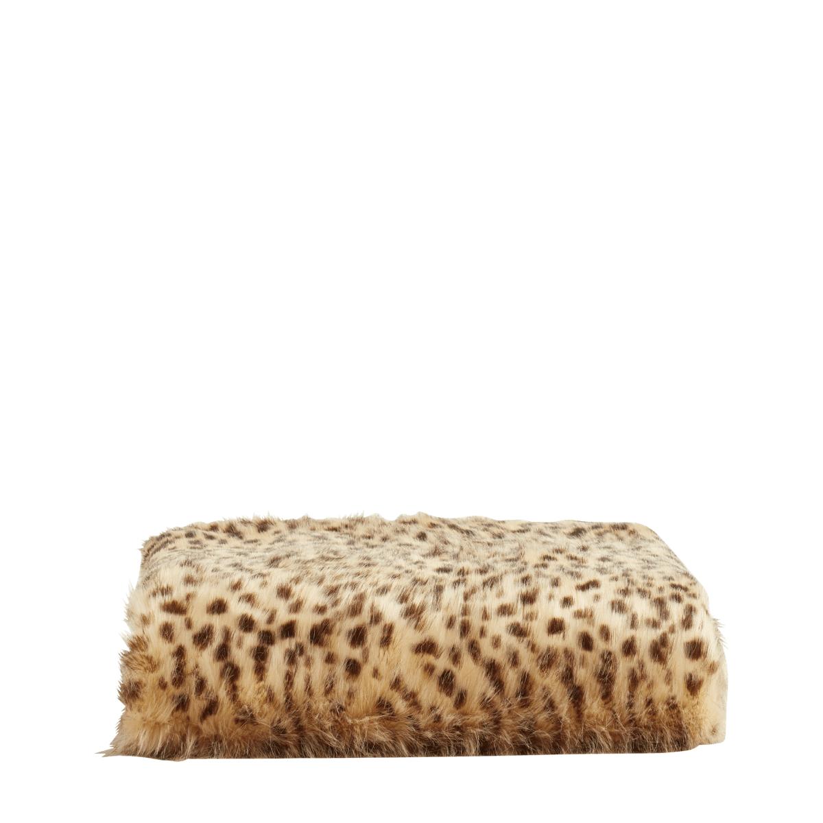 OKA, Yolyn Faux Fur Throw - Cheetah / Blue, Throws, Acrylic/Polyester, Cheetah
