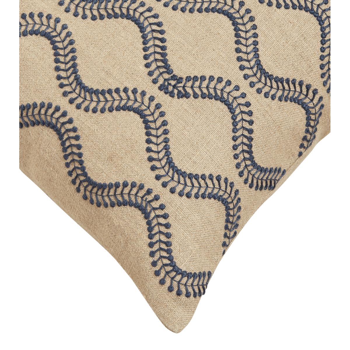 Adorned with deep-blue wave-like embroidery, the Zostera Cushion Cover offers an understated-yet-appealing update to your sitting room seating. An ideal choice for those who prefer to decorate with subtle or traditional palettes, but who still enjoy a hint of pattern and texture.