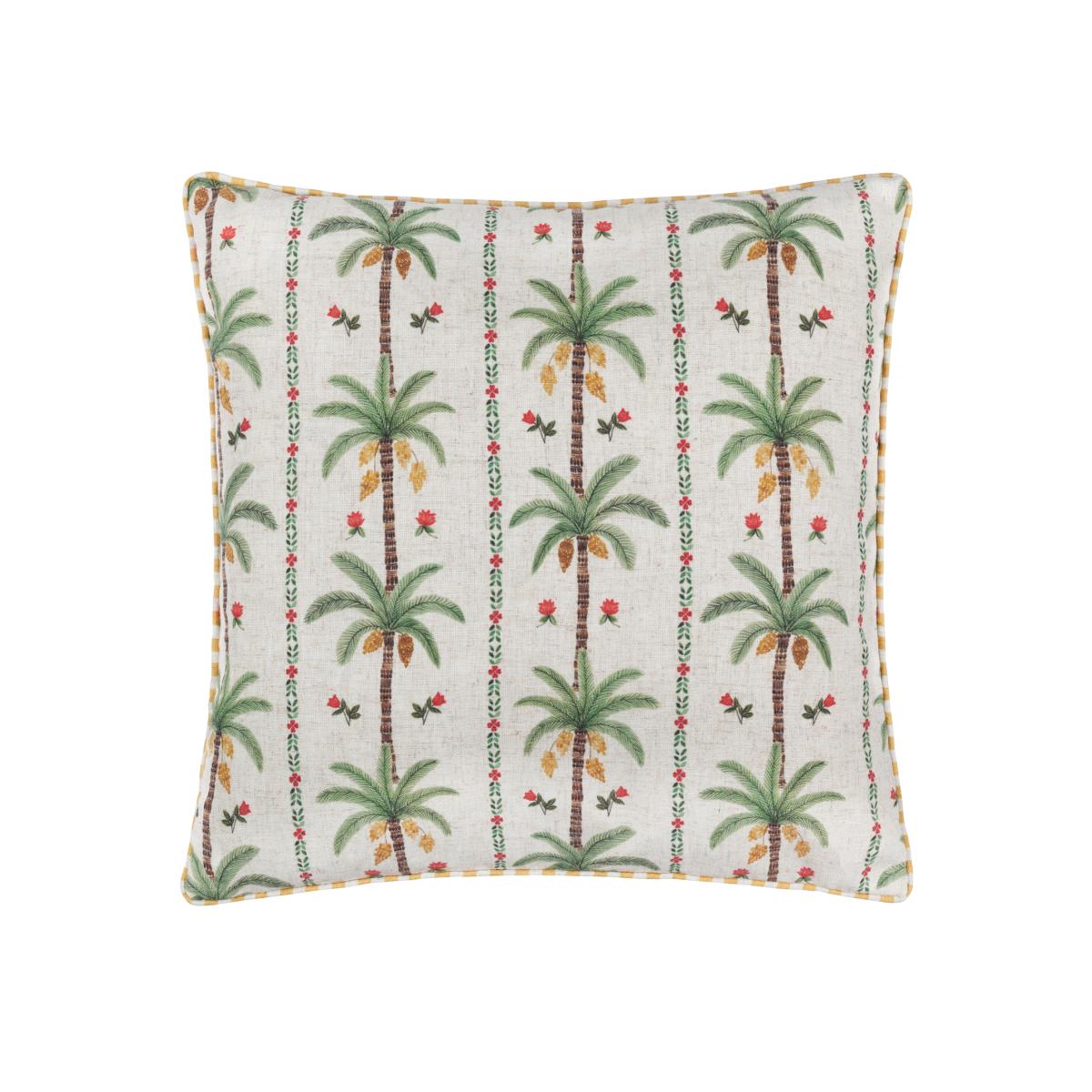 Enhance your living space with the Okara Palm Piped Cushion. Featuring a hand-painted design that juxtaposes delicate florals with bold palm tree motifs, this cushion offers a refined yet relaxed aesthetic. The textured linen-look fabric adds depth and versatility, while the piped trim provides a refined finish. With its intricately patterned reverse, this cushion effortlessly blends modern and tropical inspirations, making it an ideal accent for a variety of interior styles. Perfect for those who appreciate the beauty of nature and the charm of thoughtful design.