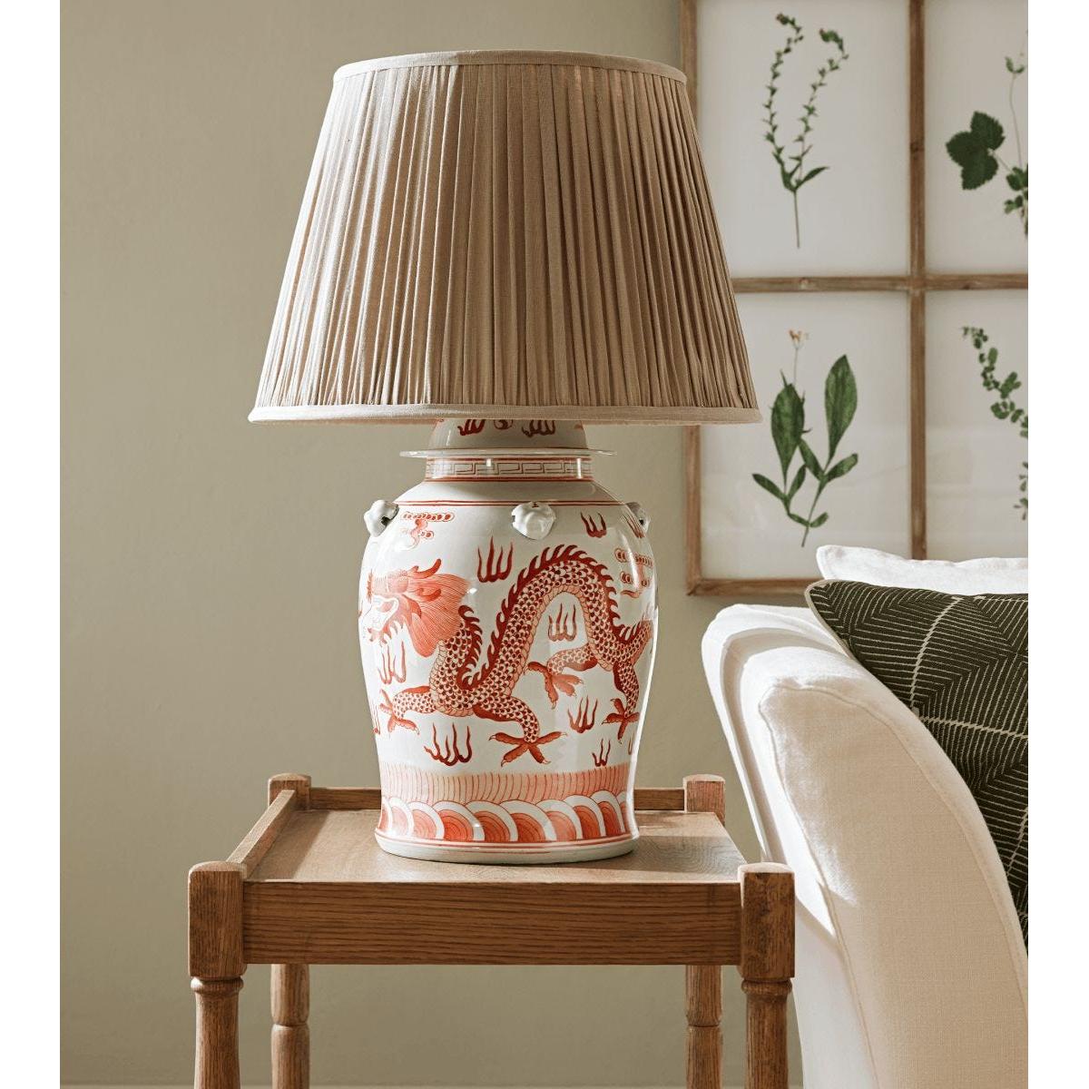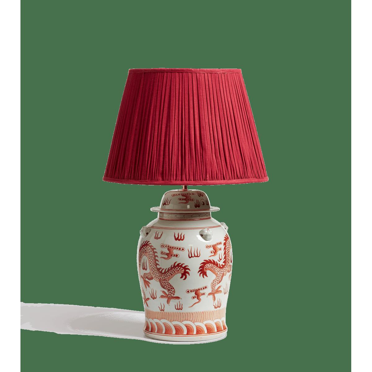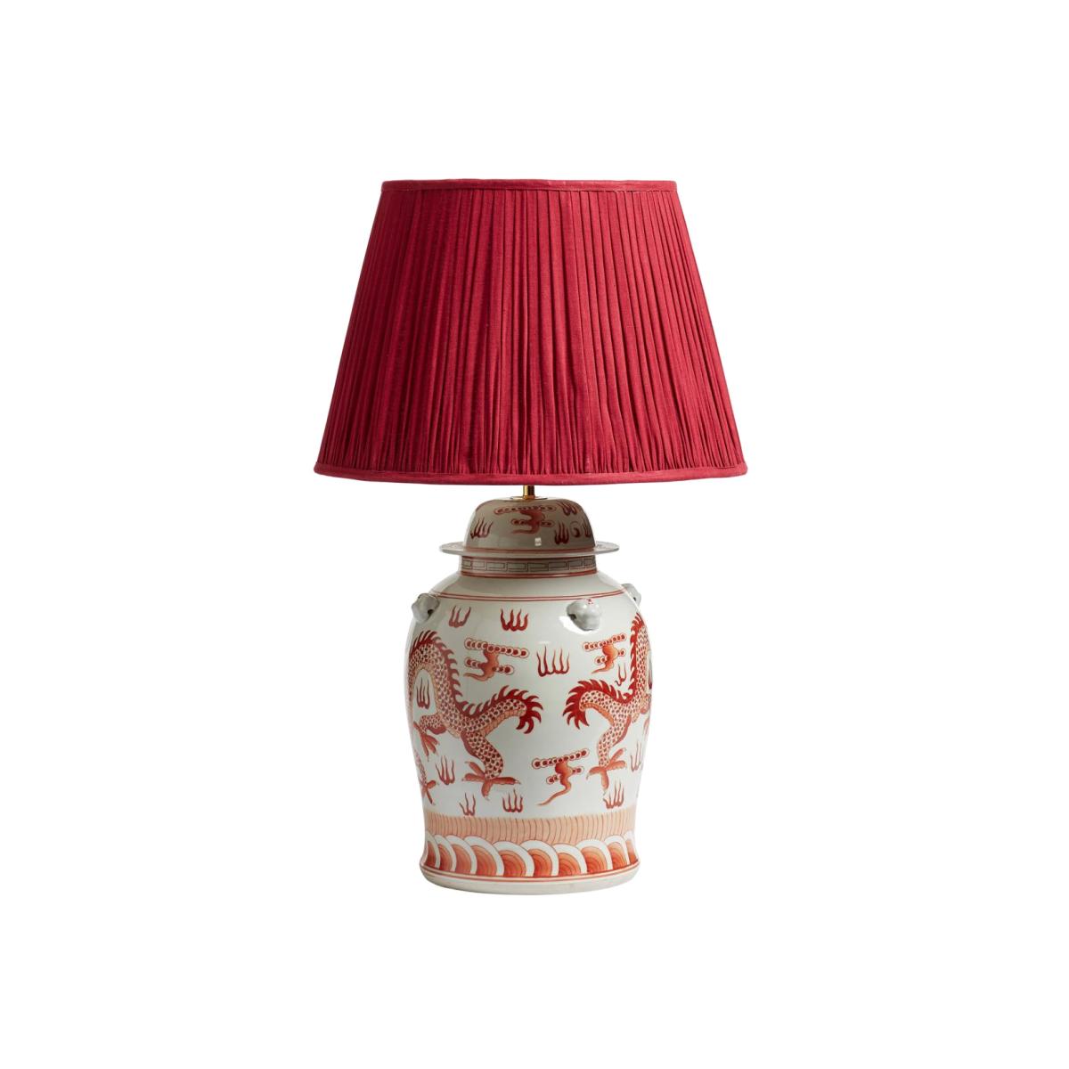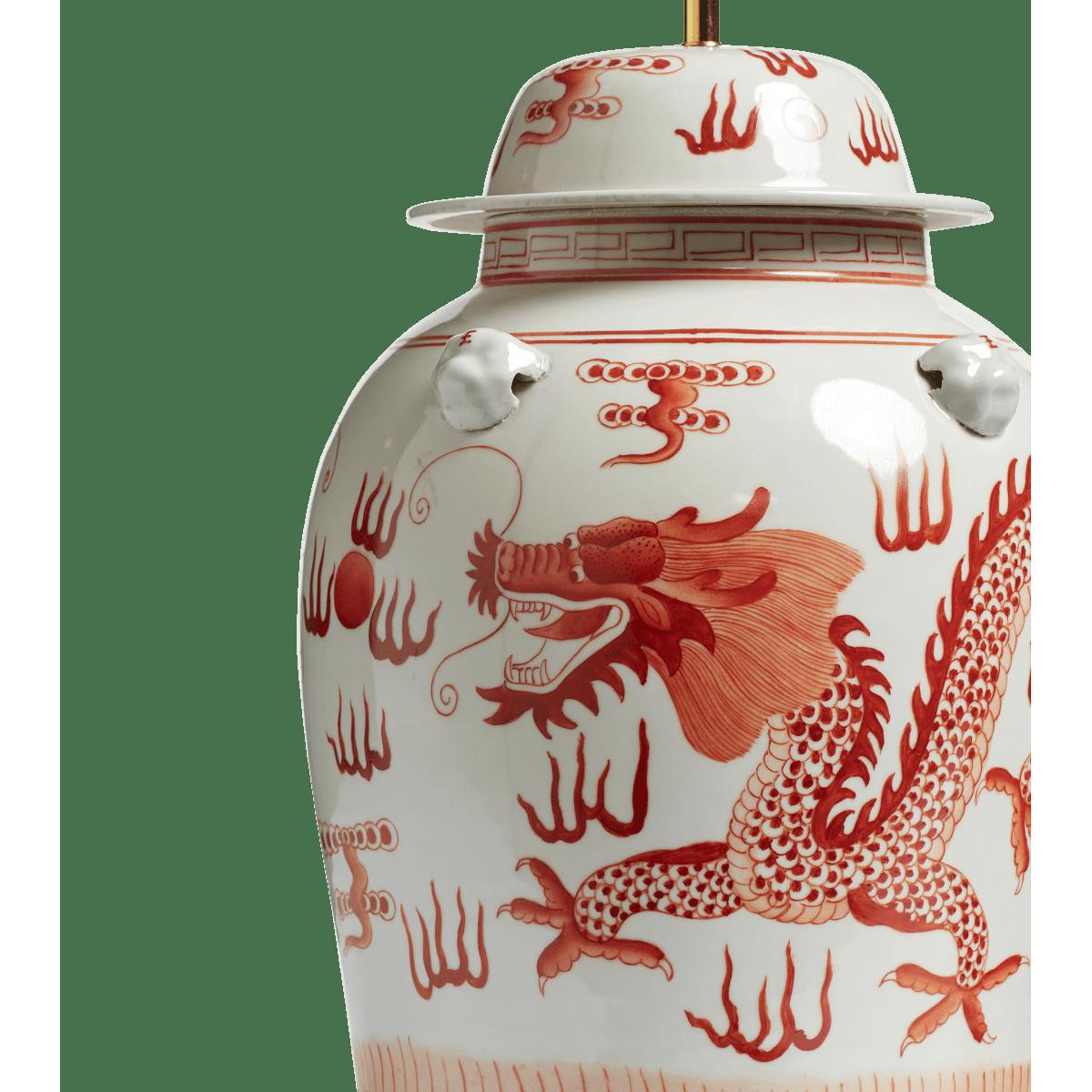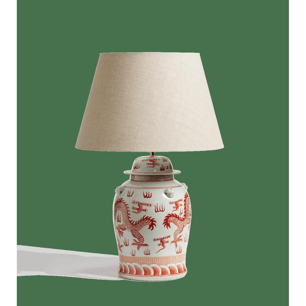 The Okin is named after the classical red dragon motif that adorns its surface. Dragon worship in Chinese culture has been around for the last 8,000 years, dragons being a symbol of power, nobility and honour, as well as luck and success – all things we would be happy to have in our lives. Other symbols featured on the Okin Table Lamp are auspicious clouds that express luck, joy, happiness and longing for a good life. These motifs are hand painted onto the clay and fired at a high temperature for a shiny glaze that does not fade.