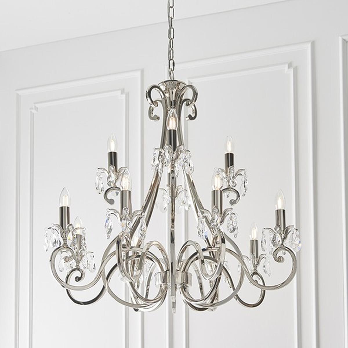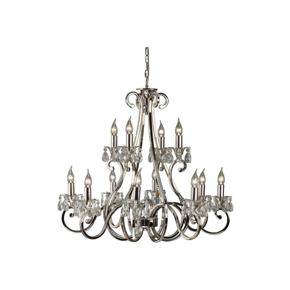 Oksana 12 Light Chandelier Polished Nickel Plate Finish, E14 - Polished Nickel Plate