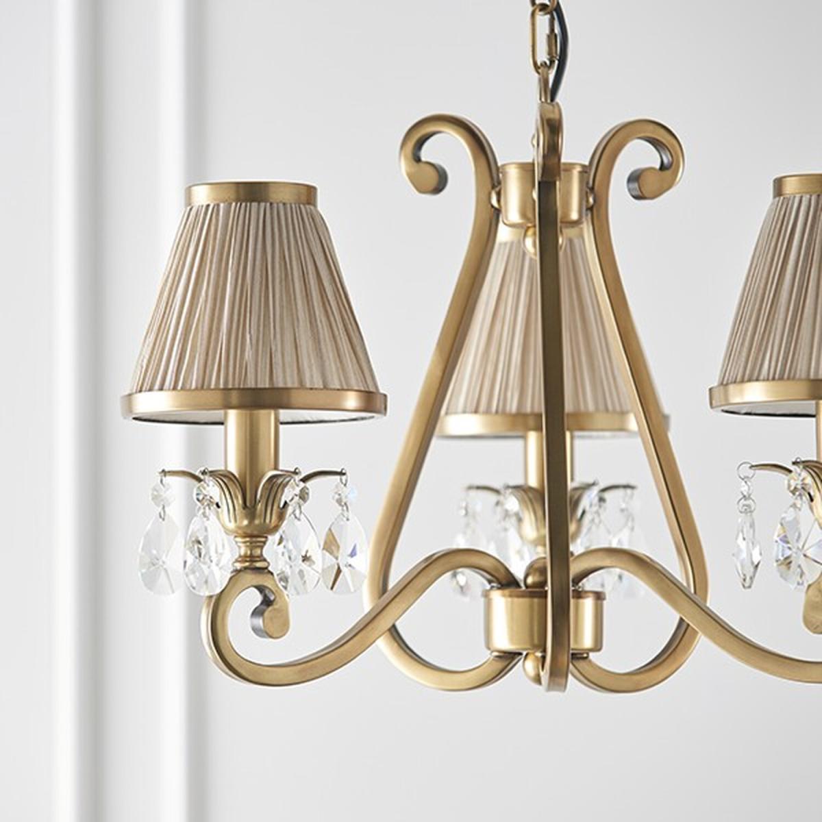 Oksana 3 Light Multi Arm Ceiling Pendant Chandelier Antique Brass, E14 - Antique Brass / 54cm