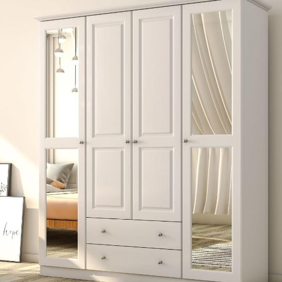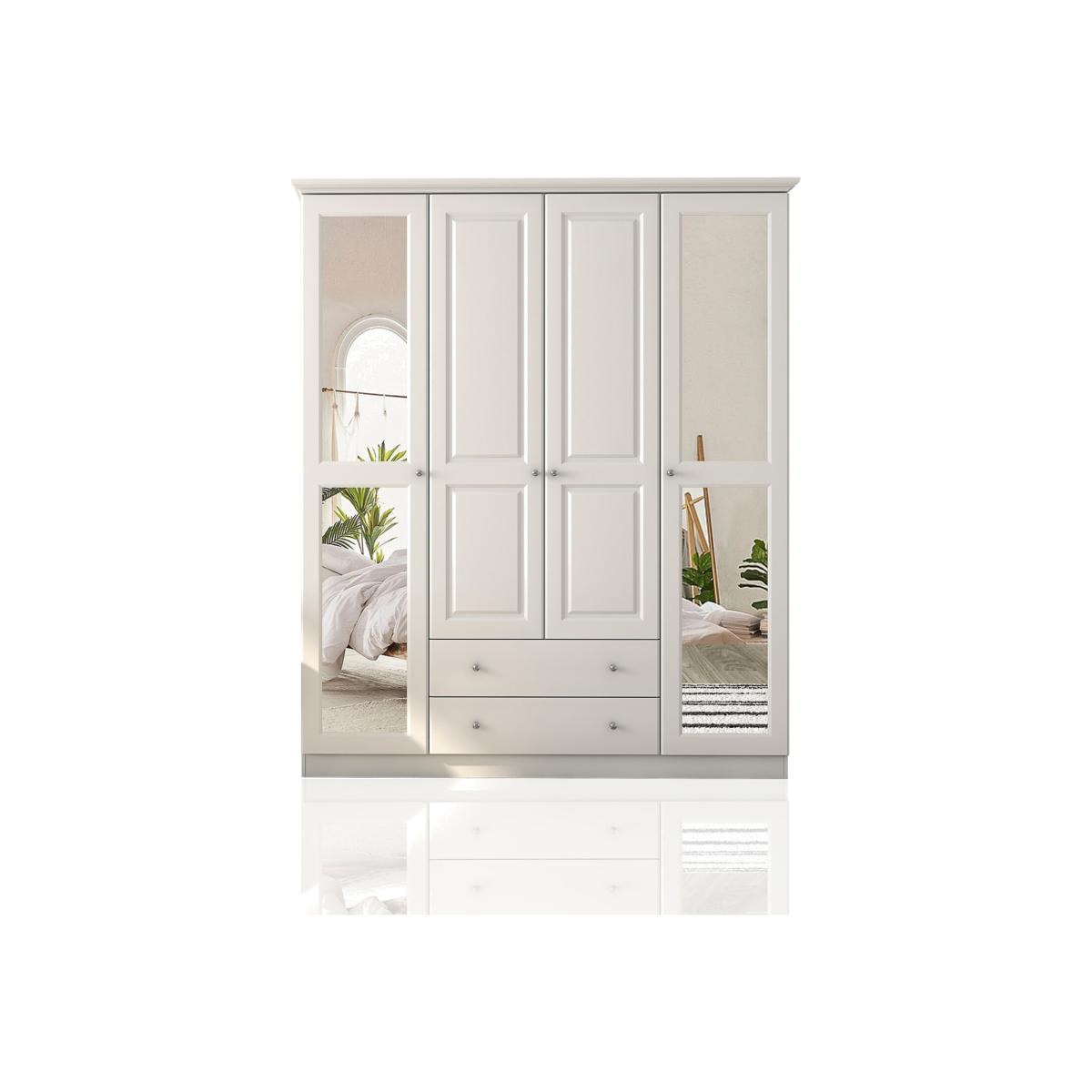 OLA 4 Door 2 Drawer Mirrored Wardrobe, White - White