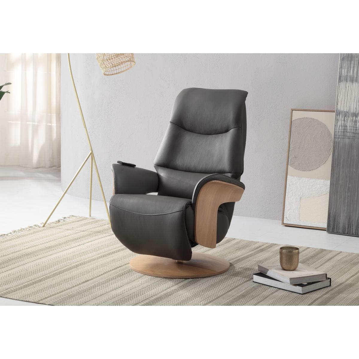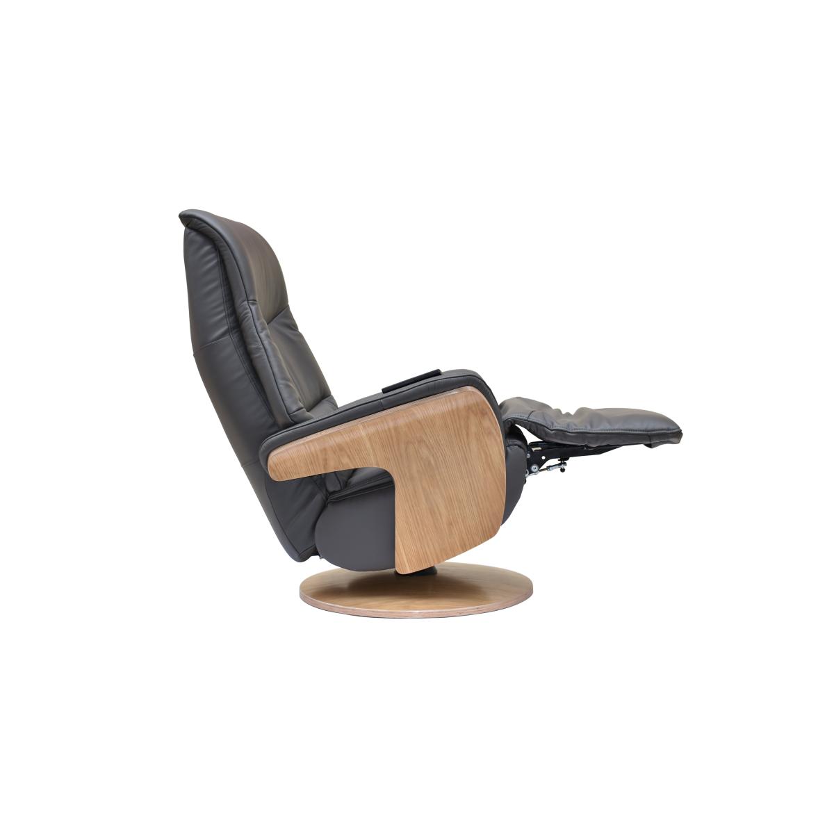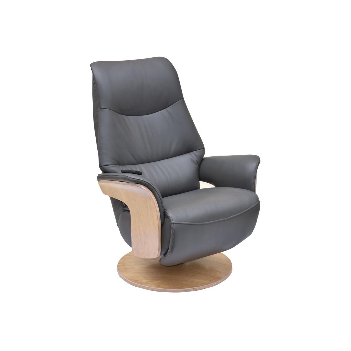 Design and comfort are in perfect harmony in this Scandi-inspired 100% leather swivel recliner chair. Its power-operated back, headrest and footrest motion are independently adjustable. Why you'll love it Very cool, very stylish and very comfortable power swivel recliner chair with integrated footrest. Scandi-inspired design with light wood arm frames and round base. 360 degree swivel, contoured shape and curved arms for the ultimate in relaxation. Back, headrest and footrest can be adjusted separately for the perfect reclining position. Easy-to-use cordless magnetic handset sits on the arm. Beautifully soft premium-quality 100% leather upholstery. In a choice of on-trend colours. This swivel recliner chair is part of the recliner collection at Furniture Village. What you need to know This product requires self-assembly. Medium comfort level. Seat suspension: metal frame. Seat cushioning: spring and foam. Seat cushioning is fixed. Back suspension: metal frame. Back cushioning: foam. Back cushioning is fixed. Arm cushioning: foam. Please allow time for the recliner mechanism to ease. Minor gaps are necessary to ensure ease of motion and may be exaggerated depending on floor type. Leather has unique marks and characteristics with variance in colour and texture. Leather softens with use. Smoothing the tops of leather cushions prevents signs of visual comfort. Please read our upholstery care guide for more advice. Item code: OLAFCH--CHRL-001