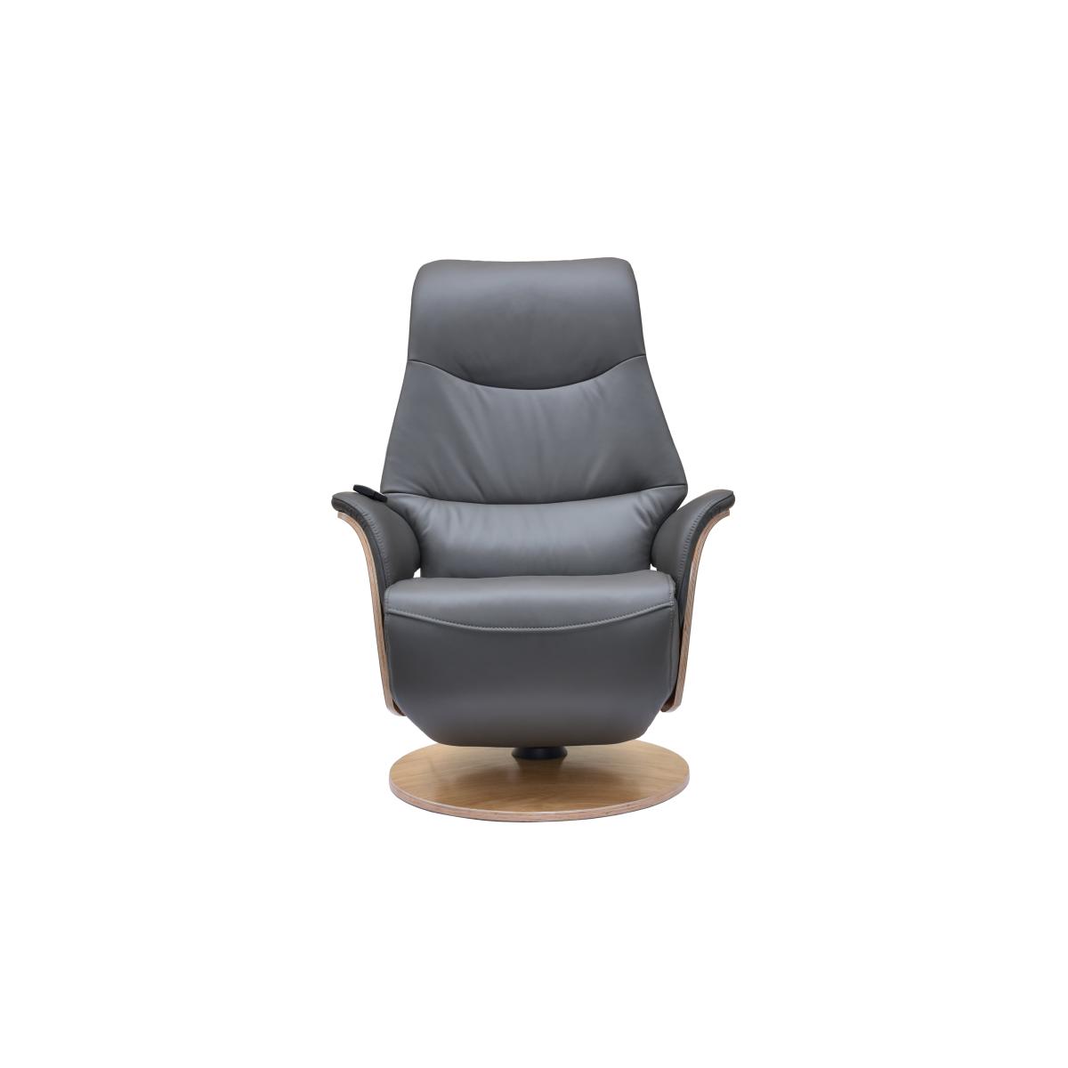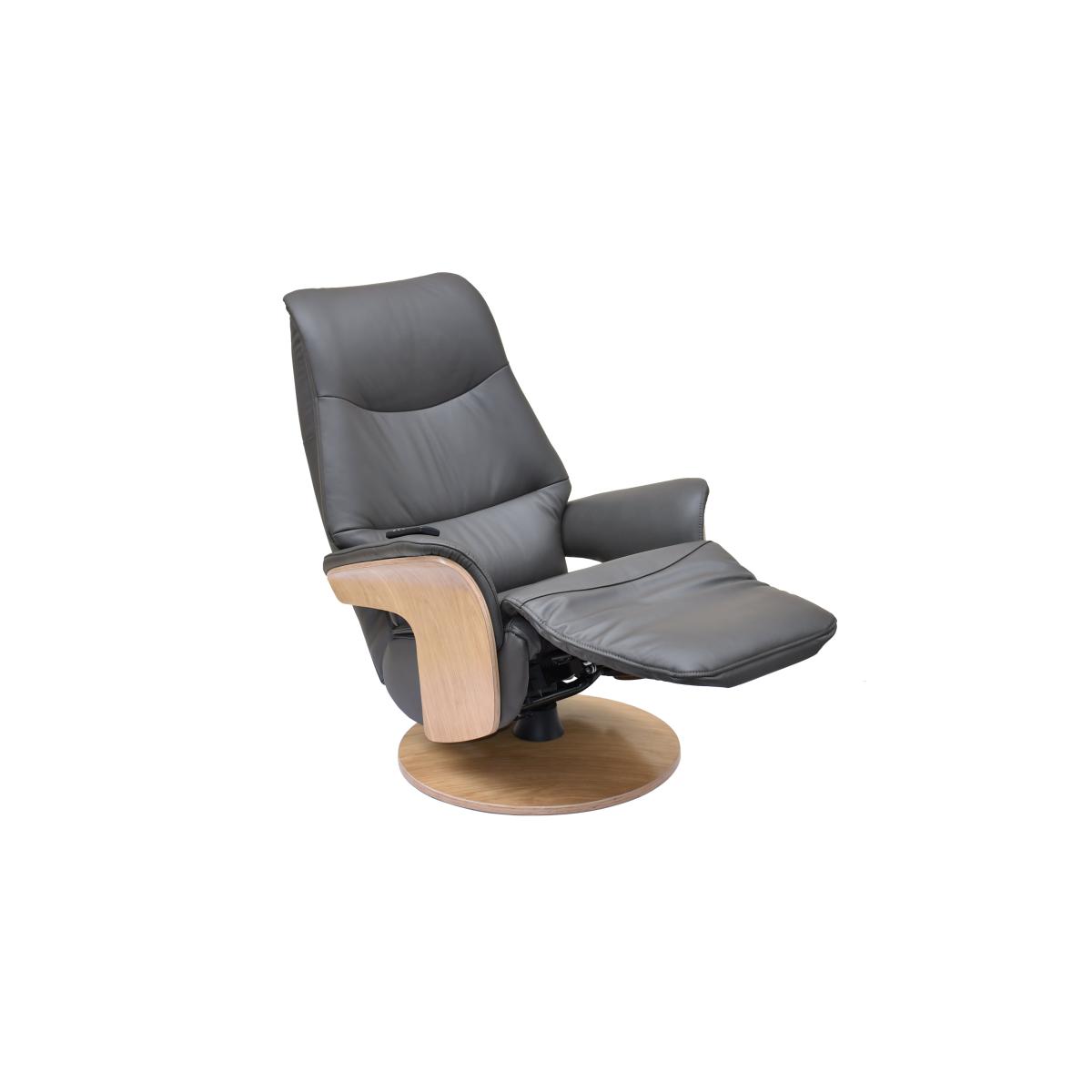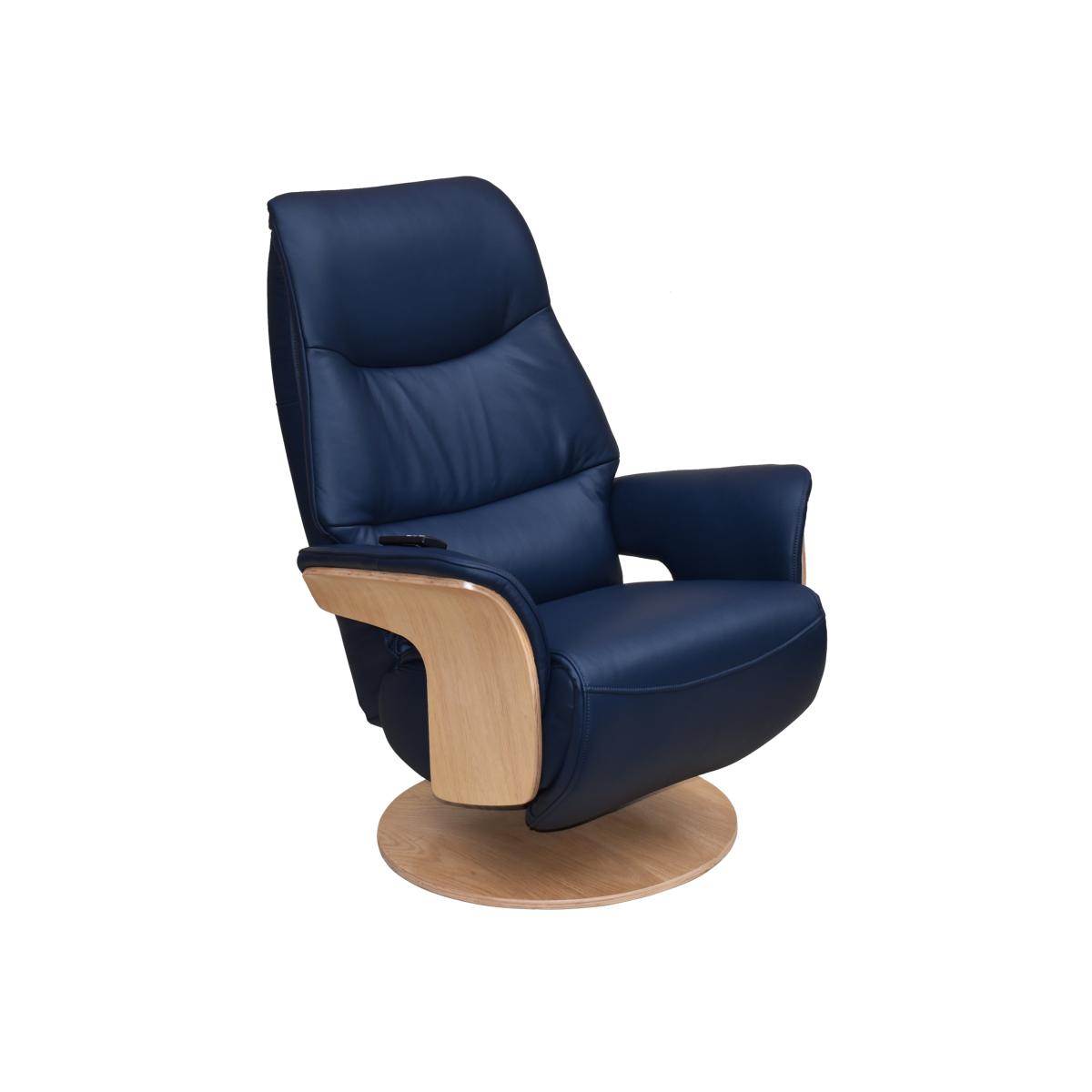 Design and comfort are in perfect harmony in this Scandi-inspired 100% leather swivel recliner chair. Its power-operated back, headrest and footrest motion are independently adjustable. Why you'll love it Very cool, very stylish and very comfortable power swivel recliner chair with integrated footrest. Scandi-inspired design with light wood arm frames and round base. 360 degree swivel, contoured shape and curved arms for the ultimate in relaxation. Back, headrest and footrest can be adjusted separately for the perfect reclining position. Easy-to-use cordless magnetic handset sits on the arm. Beautifully soft premium-quality 100% leather upholstery. In a choice of on-trend colours. This swivel recliner chair is part of the recliner collection at Furniture Village. What you need to know This product requires self-assembly. Medium comfort level. Seat suspension: metal frame. Seat cushioning: spring and foam. Seat cushioning is fixed. Back suspension: metal frame. Back cushioning: foam. Back cushioning is fixed. Arm cushioning: foam. Please allow time for the recliner mechanism to ease. Minor gaps are necessary to ensure ease of motion and may be exaggerated depending on floor type. Leather has unique marks and characteristics with variance in colour and texture. Leather softens with use. Smoothing the tops of leather cushions prevents signs of visual comfort. Please read our upholstery care guide for more advice. Item code: OLAFCH--NAVL-001