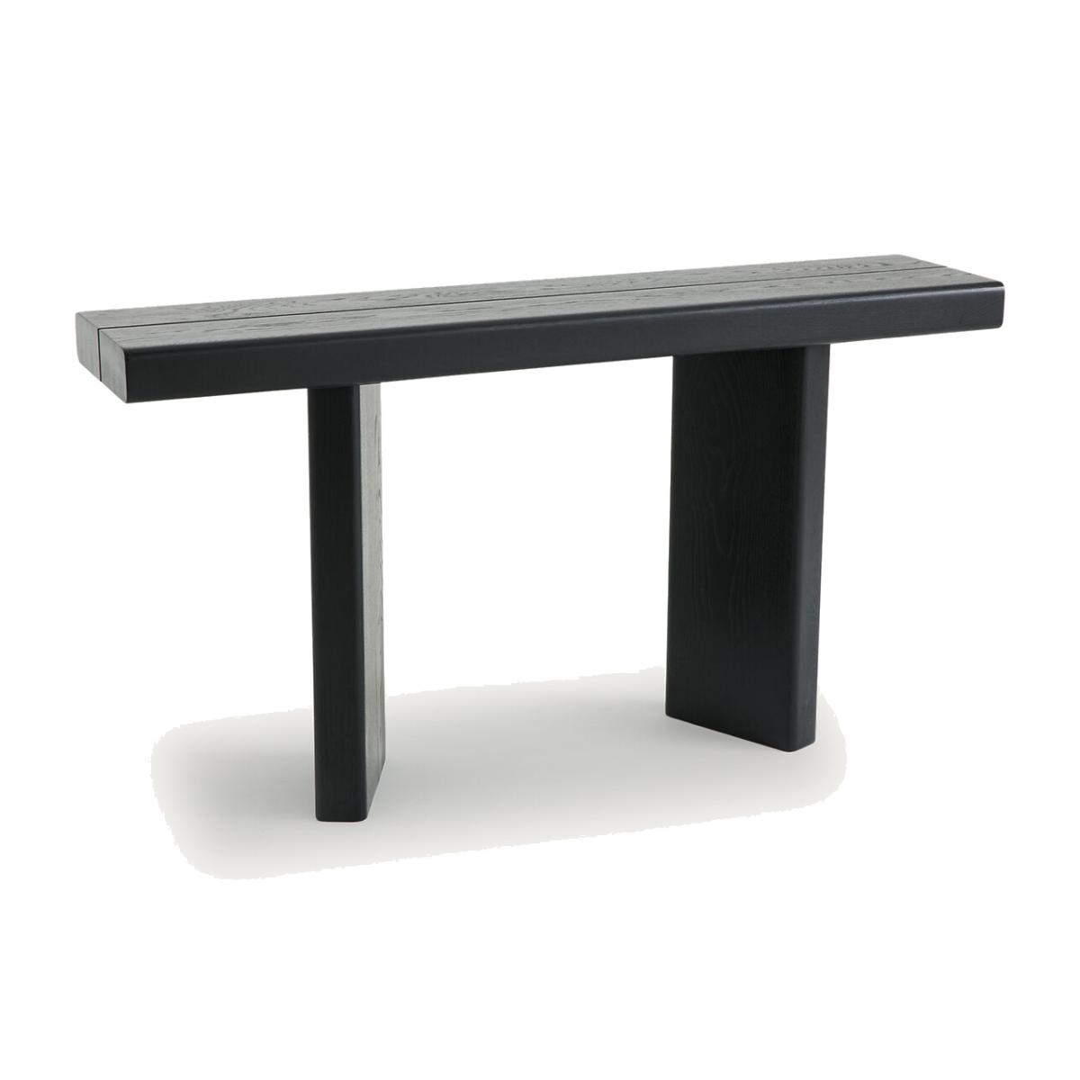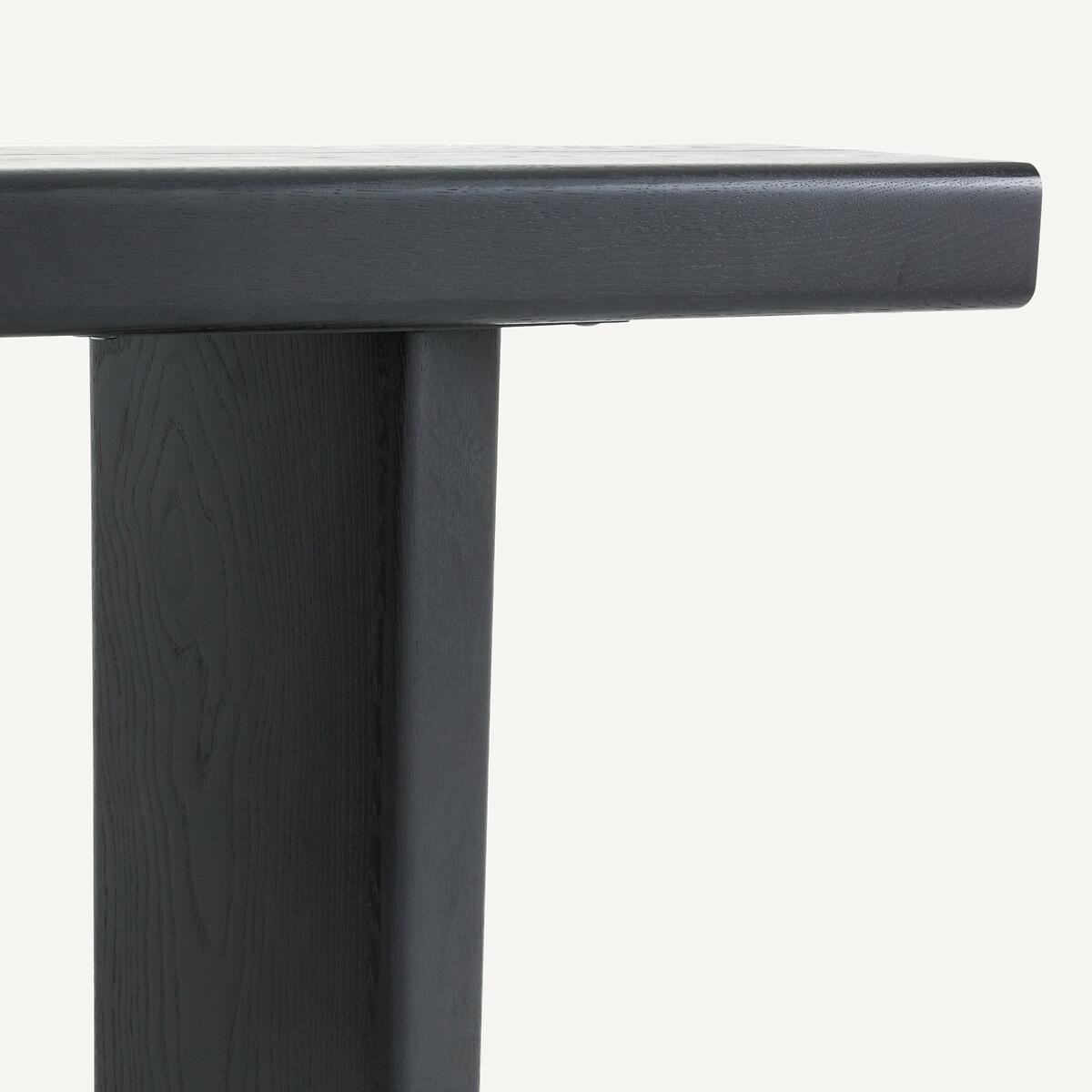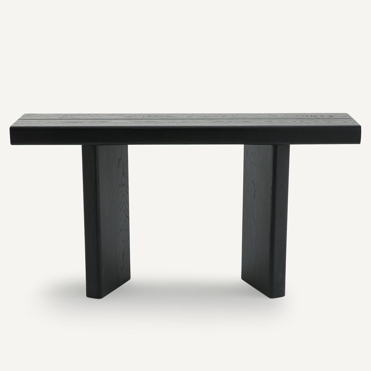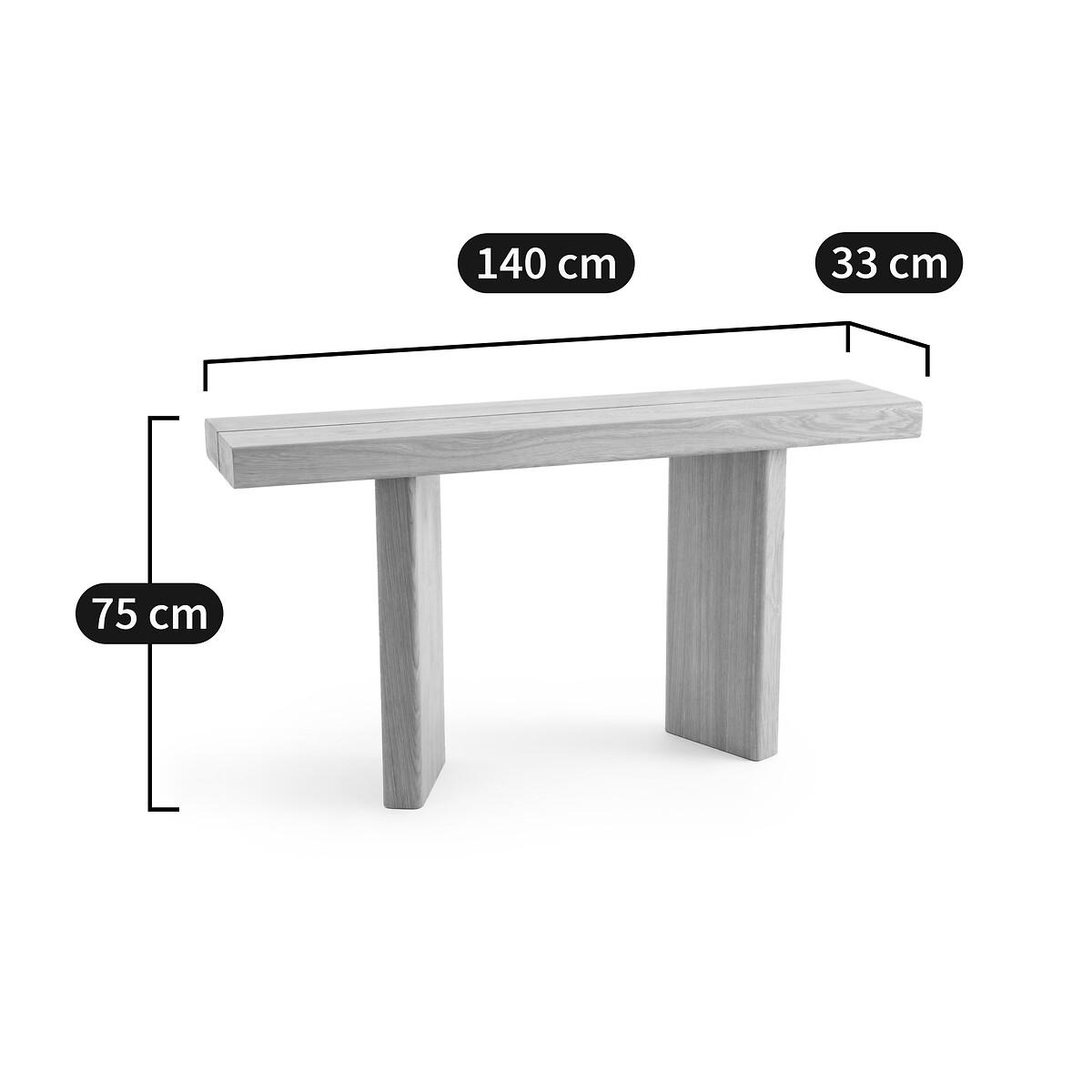 With a thick top and a massive structure, the Olaga console has a strong creative style. Its original base and balanced design make it an authentic and elegant piece of furniture. Product Details • Top and base in solid oak, polyurethane finish • Underside of the top in oak veneered MDF • FSC® certified wood. Dimensions • Width 140cm • H75cm • Depth 33cmDelivery:. Assembly required. Available for home delivery. • WOOD FROM SUSTAINABLY MANAGED FORESTS. FSC® certified wood comes from forests that are environmentally, socially and economically well managed. Dimensions and weight of parcel1 parcel • L152 x H23 x D44cm, 33kg