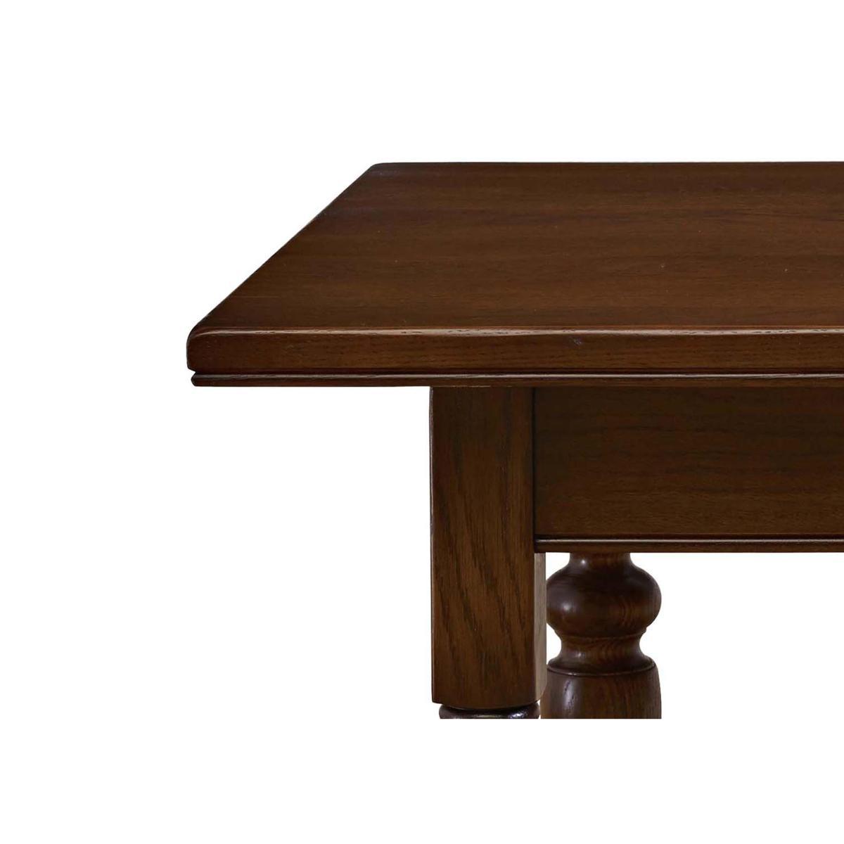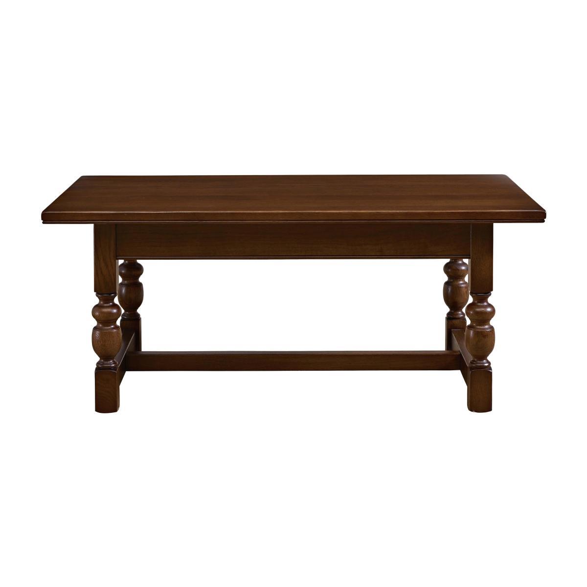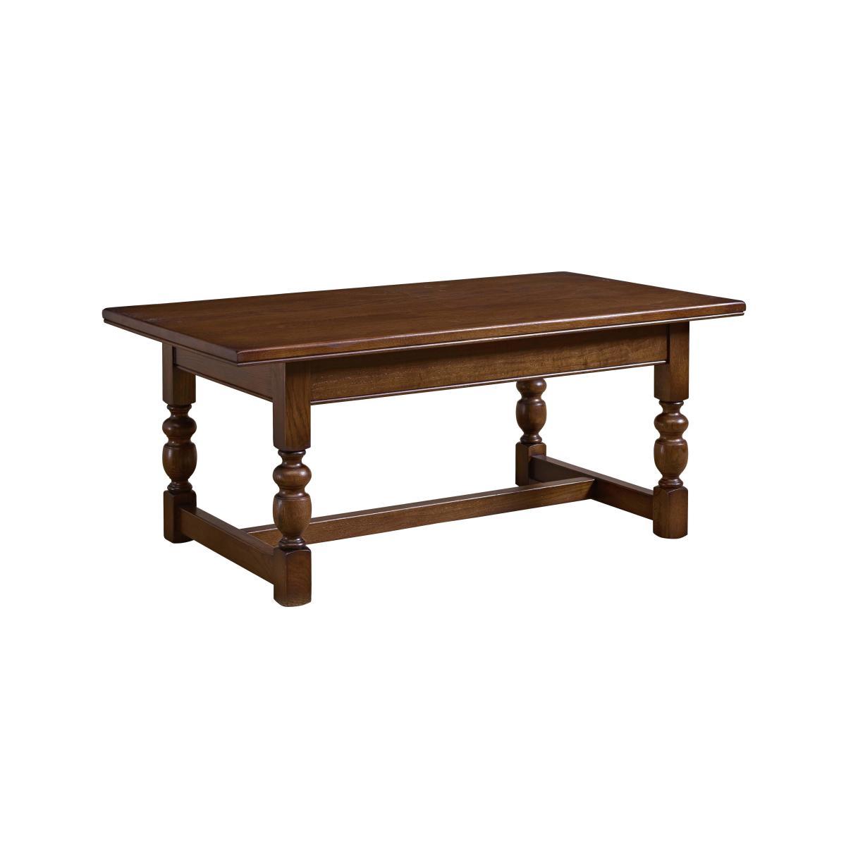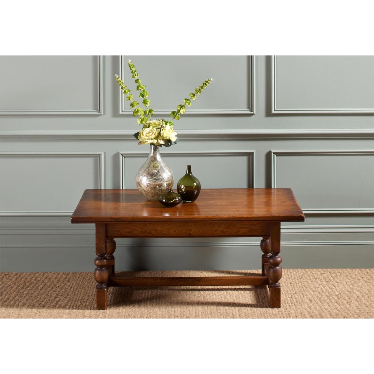Traditional in style, authentic in character, and a beautiful choice for any style of home, the Old Charm collection of living room occasional and storage pieces and dining room tables and chairs draws inspiration from England’s golden years of furniture design and cabinet making. Using only the finest quality materials, Old Charm pieces showcase turned legs, carved embellishments, secret storage compartments and metal hardware. Classic in style and wonderfully well-crafted, Old Charm makes a return to the living and dining rooms of a bygone era an effortless pleasure. Made in England. Exquisitely crafted oak coffee table from Old Charm. Made of characterful oak and oak veneers. Overhanging solid rectangular oak top with a beaded edge. Elegant turned legs. Simple, timeless, understated style. H underframe gives the table stability. A British-designed classic.