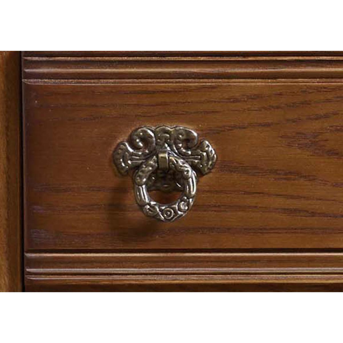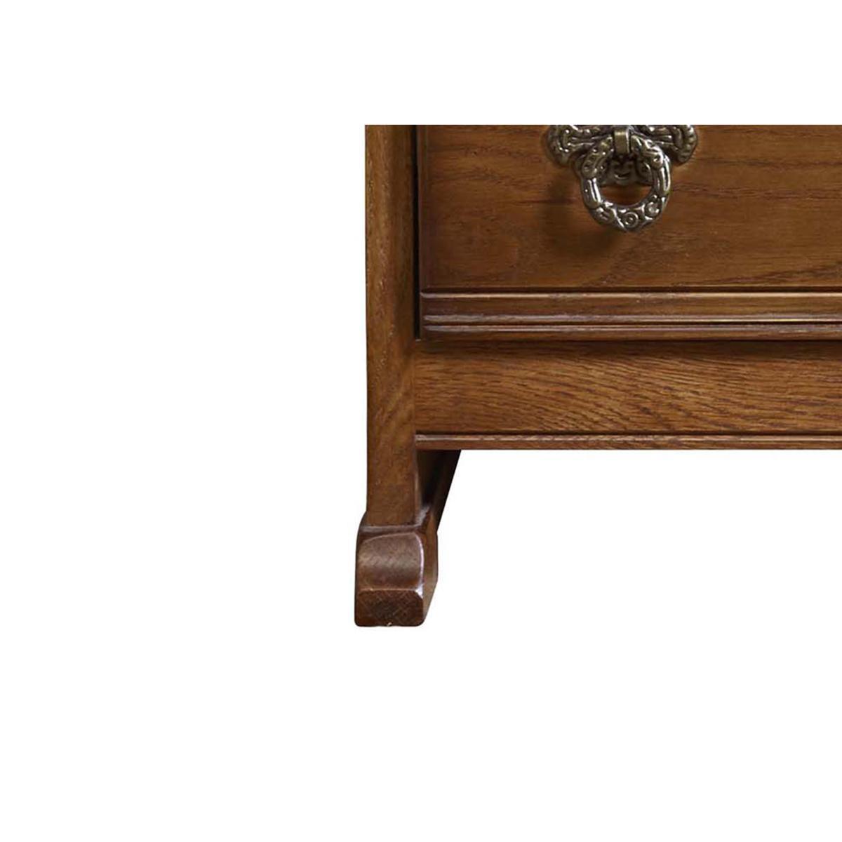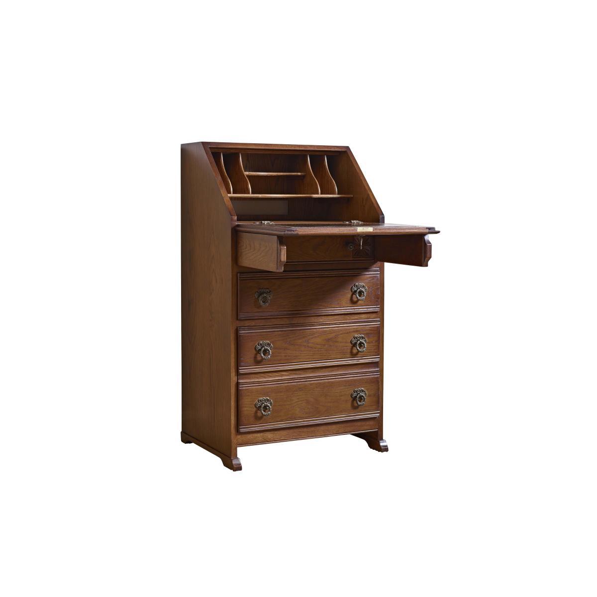 Traditional in style, authentic in character, and a beautiful choice for any style of home, the Old Charm collection of living room occasional and storage pieces and dining room tables and chairs draws inspiration from England’s golden years of furniture design and cabinet making. Using only the finest quality materials, Old Charm pieces showcase turned legs, carved embellishments, secret storage compartments and metal hardware. Classic in style and wonderfully well-crafted, Old Charm makes a return to the living and dining rooms of a bygone era an effortless pleasure. Made in England. Exquisitely crafted oak ladies bureau from Old Charm. Made of characterful oak, a British-designed classic. Lockable fold out writing desk. Desk has shelves, cable management and stationary compartments. Leather desk writing surface in a choice of red, green or pewter. Front drop flap has a stylised diamond carving with flower motif. Two spacious drawers below with decorative metal ring handles. Bottom two drawers are a false front for a large filing drawer. WARNING!. Furniture can tip over unexpectedly and cause injury. This item shall be fixed to a wall using the anti-tip kit provided with the furniture. Be sure to use the correct wall fixings suitable for the walls in your home.