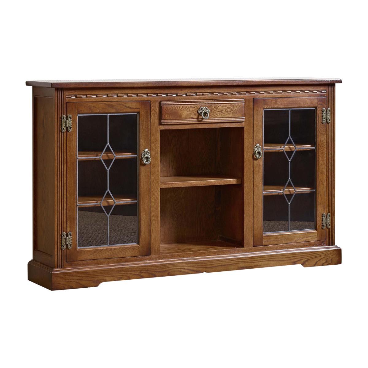 Traditional in style, authentic in character, and a beautiful choice for any style of home, the Old Charm collection of living room occasional and storage pieces and dining room tables and chairs draws inspiration from England’s golden years of furniture design and cabinet making. Using only the finest quality materials, Old Charm pieces showcase turned legs, carved embellishments, secret storage compartments and metal hardware. Classic in style and wonderfully well-crafted, Old Charm makes a return to the living and dining rooms of a bygone era an effortless pleasure. Made in England. Beautiful and practical bookcase is a must for anyone who loves traditional furniture. Crafted by Old Charm and with an authentic antiqued finish, this piece offers cupboard, shelf and drawer storage. Why you'll love it. Traditional oak bookcase with open shelving displays a wealth of wonderful detail. Inspired by Tudor and Elizabethan design and craftsmanship. Made from the finest characterful oak. Cupboards, drawer and open shelf provide generous storage. Cupboards have leaded glass doors. Hand-finished chop carving and beading. Bespoke metal door and drawer pulls. Decorative plinth-style base. Designed with care in Britain. What you need to know. Cupboards each have 2 adjustable shelves. As oak is a natural material, you can expect to see knots, markings and colour variations. Part of the Old Charm collection of living room and dining room furniture.