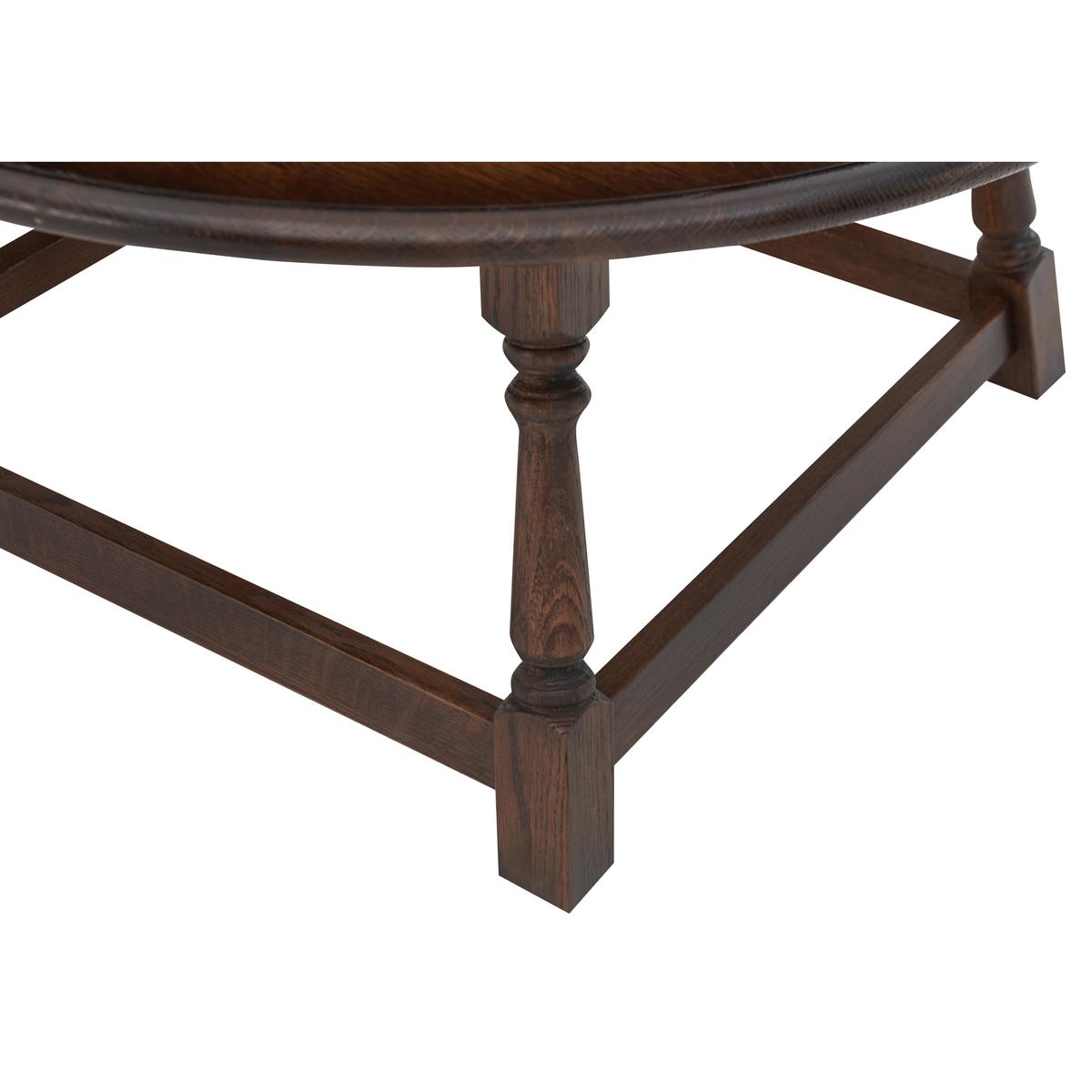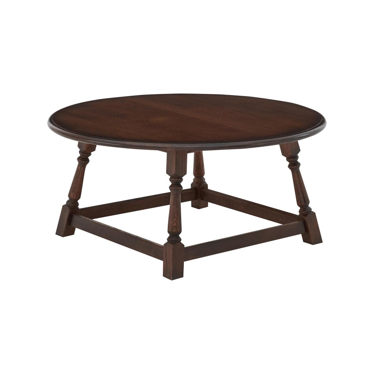 Traditional solid oak furniture for living and dining rooms In a choice of two characterful finishes Beautifully crafted in England Simple, well- crafted and charming, the Old Charm coffee table is a stylish alternative to more modern versions of this living room essential. Made from solid oak, it features a generously- sized round top supported by four sturdy turned legs. Superbly recreating the craftsmanship of a bygone era, and drawing inspiration from Tudor and Elizabethan furniture design and cabinetry techniques, this small coffee table is a timeless addition to any home. Choose from two lovely oak finishes the pristine finish of traditional and the mellow aged look of classic. This table is also available in a choice of wood colours. The antique- style Old Charm coffee table is made in England and is part of the gorgeous Old Charm collection. This range features a wide choice of occasional tables and storage pieces, dining chairs, and a large extending traditional oak dining table that seats ten in wonderful traditional style. Did you know? Natural wood has unique markings, with some colour variation. The colour and tone of wood improves with age.