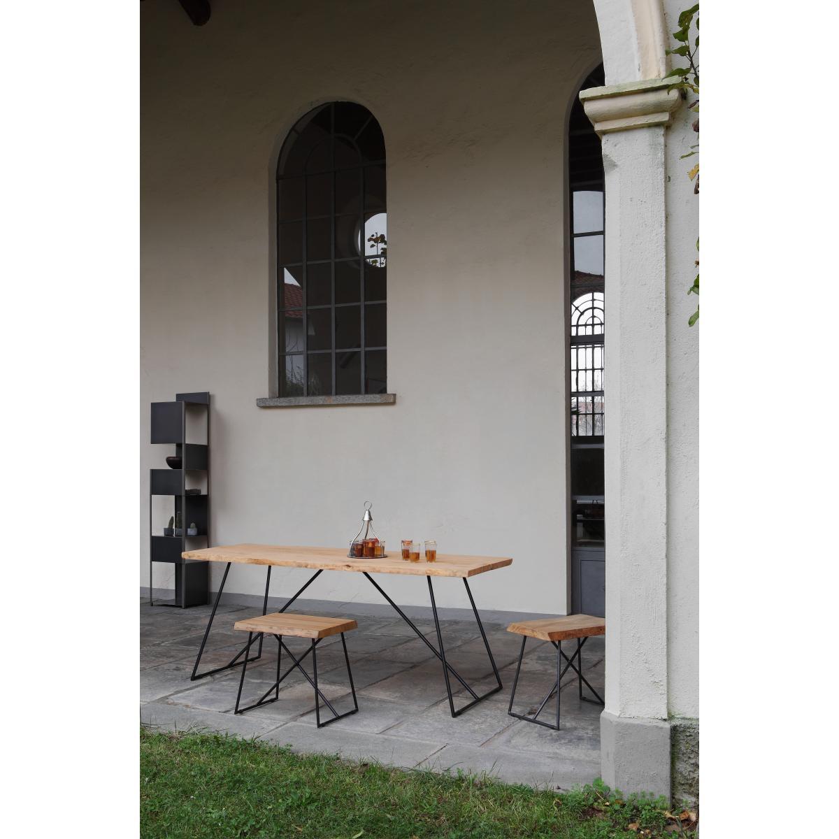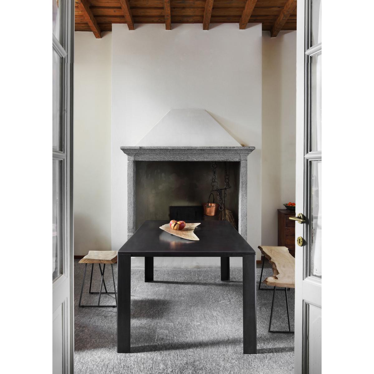 A natural feel and raw beauty for this fantastic stool that has the air of a primitive sculpture! Each item in the Old Times collection is an extraordinary, unique piece, hand-crafted from a single piece of old wood (olive tree) which is then waxed. Just two Italian cabinetmakers work on making the Old Times collection, which requires exceptional craftsmanship. Old Times showcases wood in its raw state: the defects which are generally glossed over here are highlighted and shown off. The knots and irregular contours of the aged solid elm seat are the ingredients of a primitive aesthetic that draws a link between present and past. This stool tells us about those ancient times when men sat on tree trunks and rocks. The minimalist design of the steel rod base superbly sets off the seat. The charisma of the Old Times stool is expressed through a mix of simplicity, modernity and authenticity. Zeus furniture is made by skilled craftsmen in Italy, near Modena. Each piece is made by hand: the metal is cut, assembled, welded and painted by hand. Each item is unique. Steel is a recyclable material and any metal scrap not used during manufacturing is recycled for re-use. Zeus furniture is built to last: highly durable, this furniture can be handed down from generation to generation.
