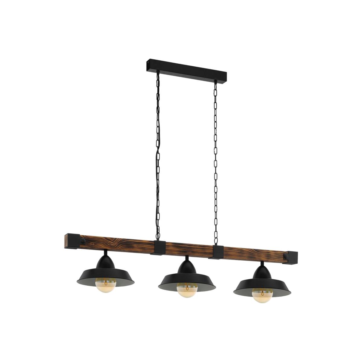 Rustic ceiling light bar boasting a dark wooden frame and black finish. A vintage statement piece, the Oldbury ceiling light bar is a fantastic fitting by Eglo. A unique styling full of rustic charm, this ceiling light boasts a dark wooden beam, suspended by black chain, which supports 3 vintage black pendant light shades. Pair with vintage light bulbs, perfect adding the wow factor into your kitchen and dining rooms. Pair this light with our 4w LED Vintage bulbs for a rustic and industrial glow to complement the exposed bulb styling.