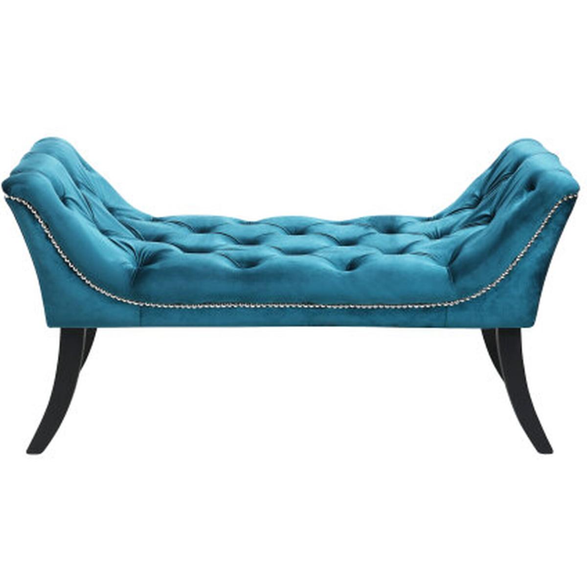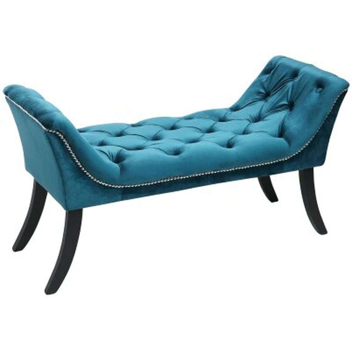The Upholstered Olga Bench with Silver Beading Design, finished with a Tufted, Cushioned Top. A modern, decorative bench with long wooden legs. The upholstery is soft and high quality, the padded seat is comfortable and not easily deformed. The bench can be used in any room in the house as a seat, dressing table chair, footrest or decorative feature piece. Available in various colours including emerald, yellow and grey. Beautiful colours that will enhance the surrounding living environment. Arrives in 1 box, minimal assembly is required. STYLISH DESIGN:The beautiful modern design will match and complement many interiors. Its soft velvet upholstery provides a long lasting, luxurious feel at an affordable price, along with the silver beading design and long black wooden legs for extra stylishness. COMFORTABLE SEAT: The top of the stool has thick padding and is tufted. It is filled with high-density foam for firm comfort. The raised sides create a backrest and armrest for guests to enjoy. MULTIPURPOSE - The bench is great as an extra seat but can also be used as a foot stool or a feature piece at the foot of your bed. It can be used as a dressing stool, a window seat bench, a stylish dining table seat, or used in the living room and study. VARIETY OF COLOURS: There are 3 colours available including grey, yellow, emerald. DIMENSIONS:L117 x D45 x H63cm. A large, padded stool perfect for extra seating and decoration.