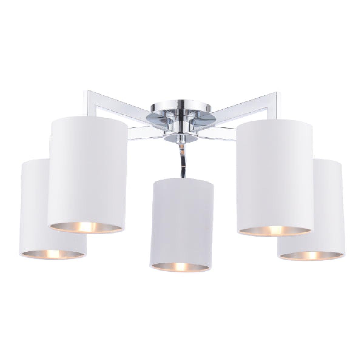 A modern 5 light ceiling light boasting a polished chrome finish Add a modern touch to your home with the luxurious Olive 5 light semi-flush ceiling light. Finished in a sophisticated polished chrome, it features 5 angular arms with crisp white cylindrical shades. This style is the perfect feature in rooms with high and low ceilings and will add a deluxe feel to living rooms, dining rooms and bedrooms. A modern 5 light ceiling light boasting a polished chrome finish Add a modern touch to your home with the luxurious Olive 5 light semi-flush ceiling light. Finished in a sophisticated polished chrome, it features 5 angular arms with crisp white cylindrical shades. This style is the perfect feature in rooms with high and low ceilings and will add a deluxe feel to living rooms, dining rooms and bedrooms.