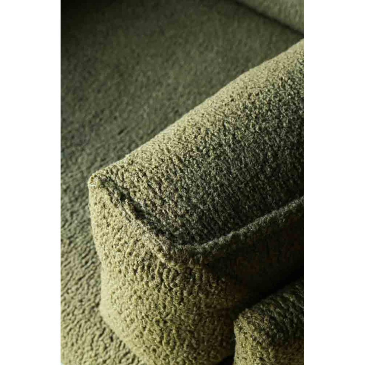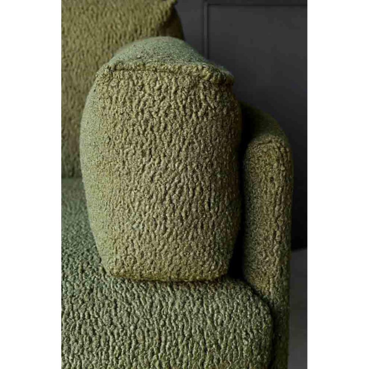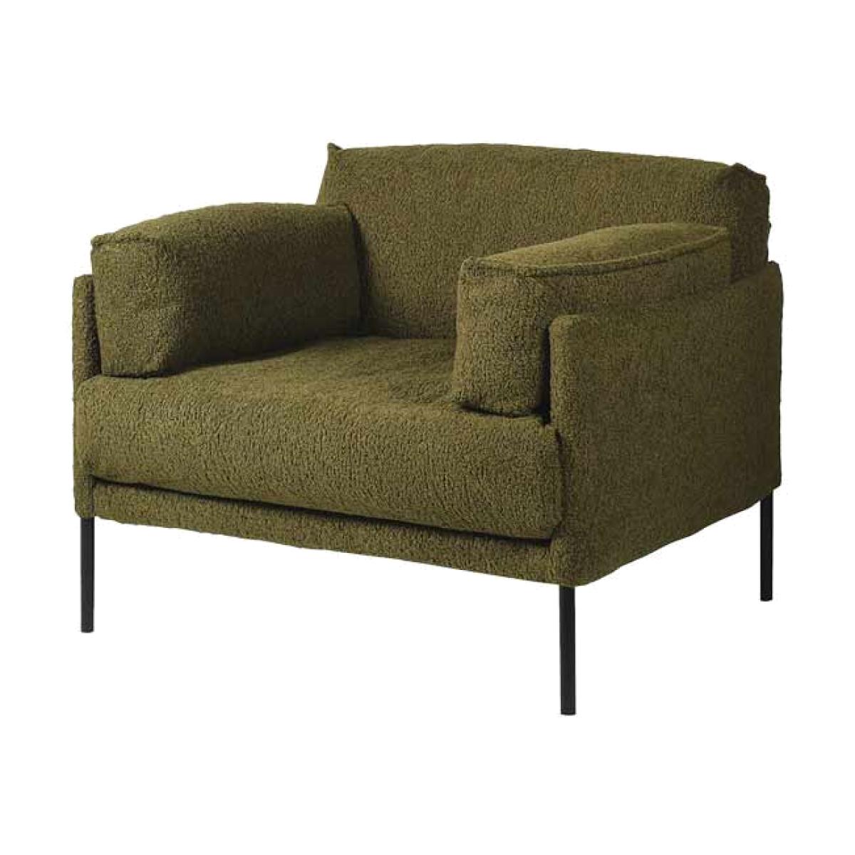 About The Olive Chunky Boucle Armchair Chic and cosy, the Olive Chunky Boucle Armchair is destined to become your new favourite spot in the house to sit back and relax in style. Designed with a fabulous olive-green colour palette, the bold chunky texture of the boucle upholstery is paired with a modern box frame and matt black chair legs. Measuring H86cm x W110cm x D93cm, the boucle armchair also includes two side cushions as stylish armrests. Why We Think You’ll Love The Olive Green ArmchairBoucle is one of our favourite upholstery options of the moment and the chunky style of this luxe lounge chair helps to take the boucle trend to the next level. From the gorgeous olive-green colour palette to the modern silhouette, this is statement seating at its finest. In addition, the wide shape helps ensure a cosy spot for curling up with a cup of tea and a magazine during the day, or a glass of wine and the latest series at night. How To Style The Green Boucle ChairGreen is one of the easiest colours to style in your home as it goes with just about everything. So, whether your living room embraces a dark and decadent colour palette or has been decorated with modern neutrals, the Olive Chunky Boucle Armchair will blend in beautifully. To complete the look, why not pair the boucle chair with the matching Olive Chunky Boucle Sofa?!