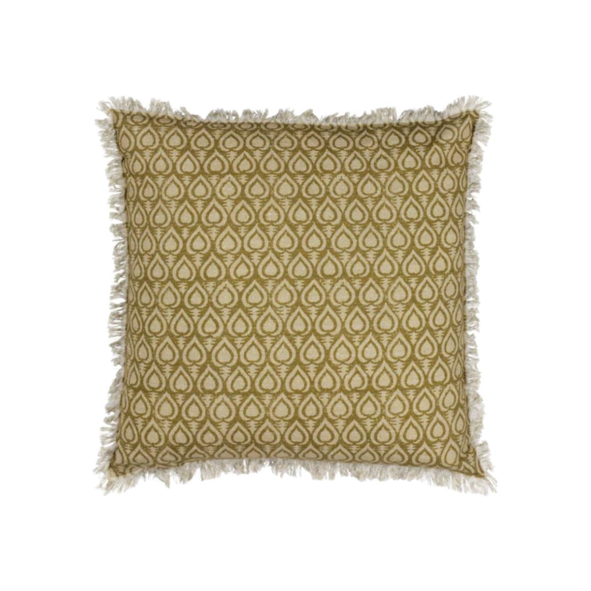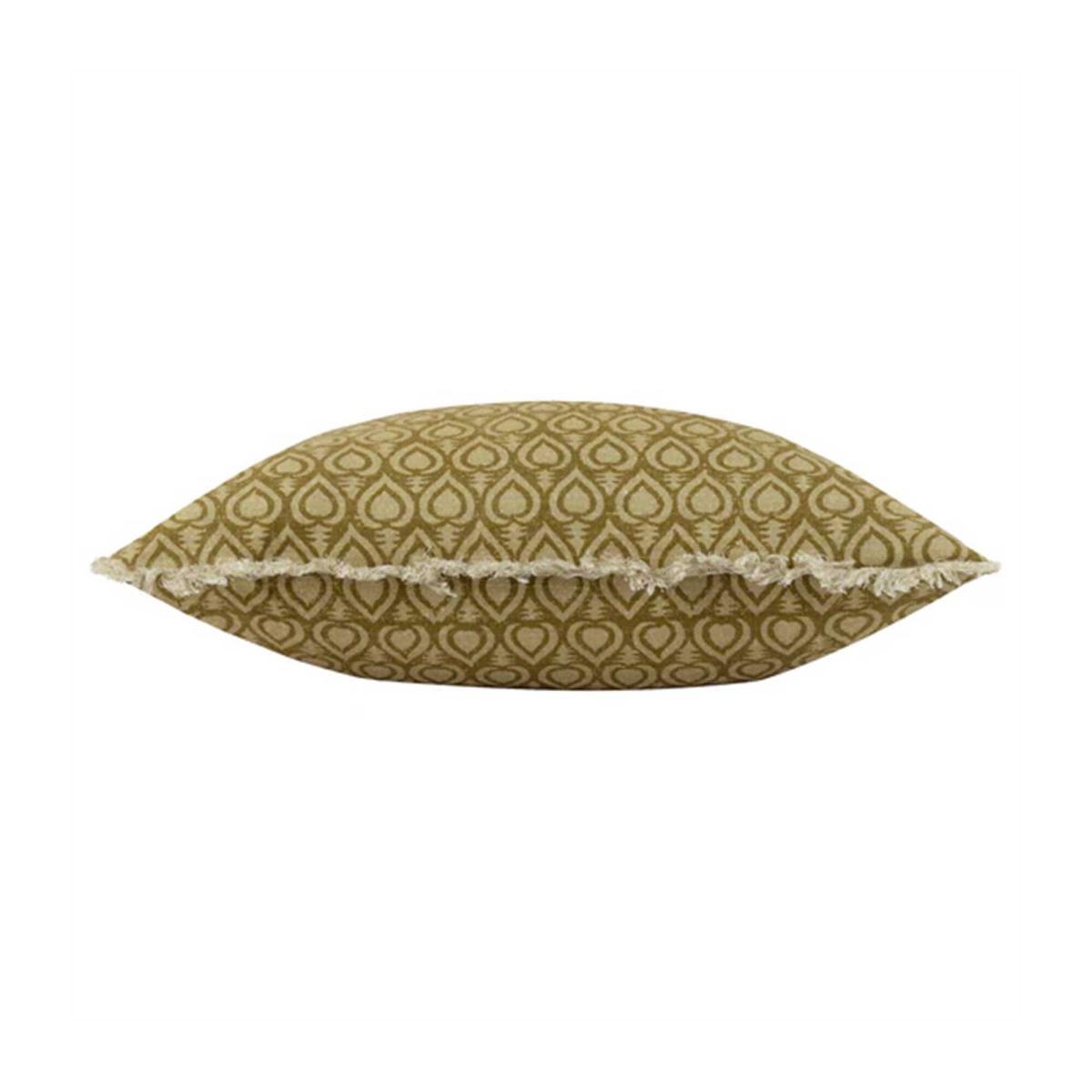 Add effortless style to your space with the Olive Fringed Deco Cushion. Showcasing a traditional geometric floral block print on a lightweight cotton base, and finished with a natural fringed trim, this cushion brings subtle texture and earthy tones to any room. Ideal for making a chic statement with minimal effort.