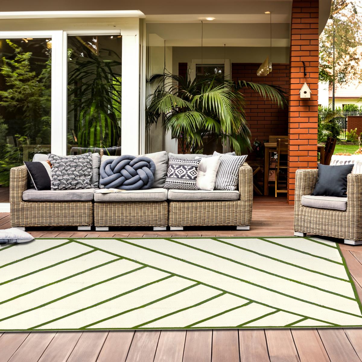Olive Green And Cream Outdoor Rug Reversible Pattern For Garden - Olive Green / 180 x 270cm