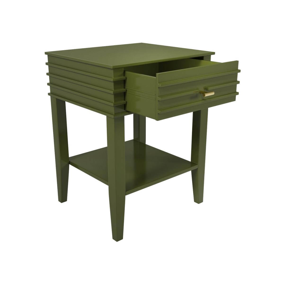 This colour brings a touch of sophistication and warmth to any room, offering a timeless yet contemporary look that complements a wide range of interior styles. The ribbed beading detail adds texture and gives a refined touch to the overall design. Offers lasting stability and elegant style while keeping the space feeling open and airy. Perfect for both traditional and contemporary interiors. With a single pull-out drawer and an open lower shelf for storing your bedside essentials. The Midori Bedside Table is a stylish and modern addition to your bedroom. Featuring a single pull-out drawer for convenient storage and an open lower shelf for additional storage space or display, it offers both practicality and elegance. The olive green colour and gold handle create a striking contrast that enhances the wooden bedside table’s sophisticated appeal. The ribbed beading detail adds character, making it a standout piece in any room. With no assembly required, the Midori bedside cabinet is the perfect addition to elevate your bedroom space.