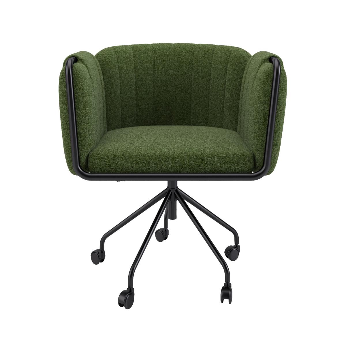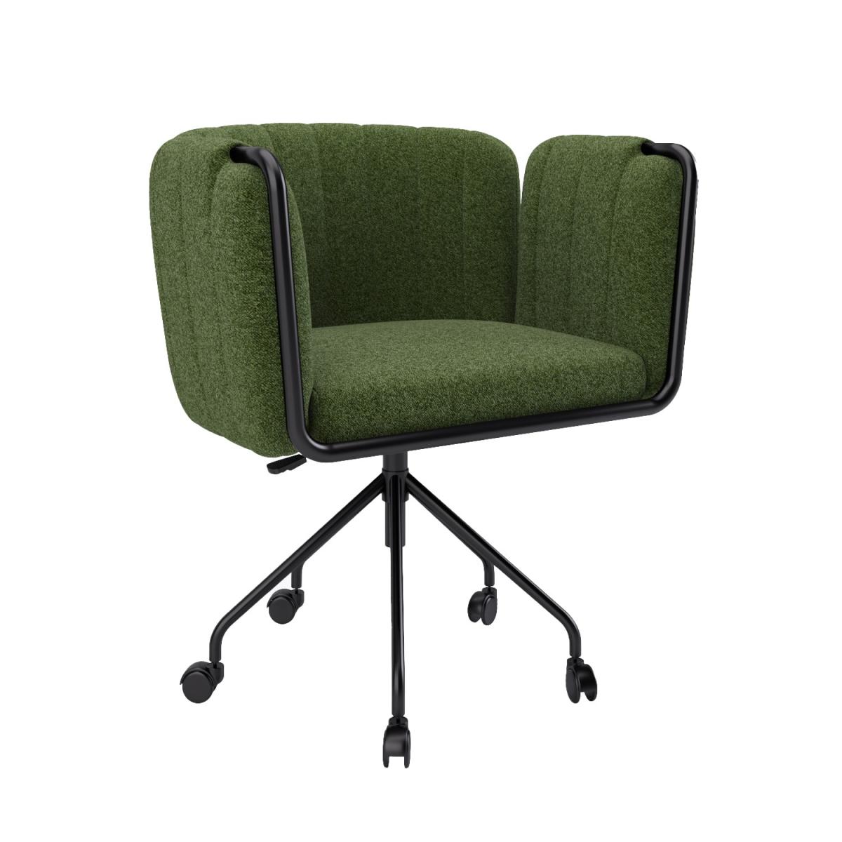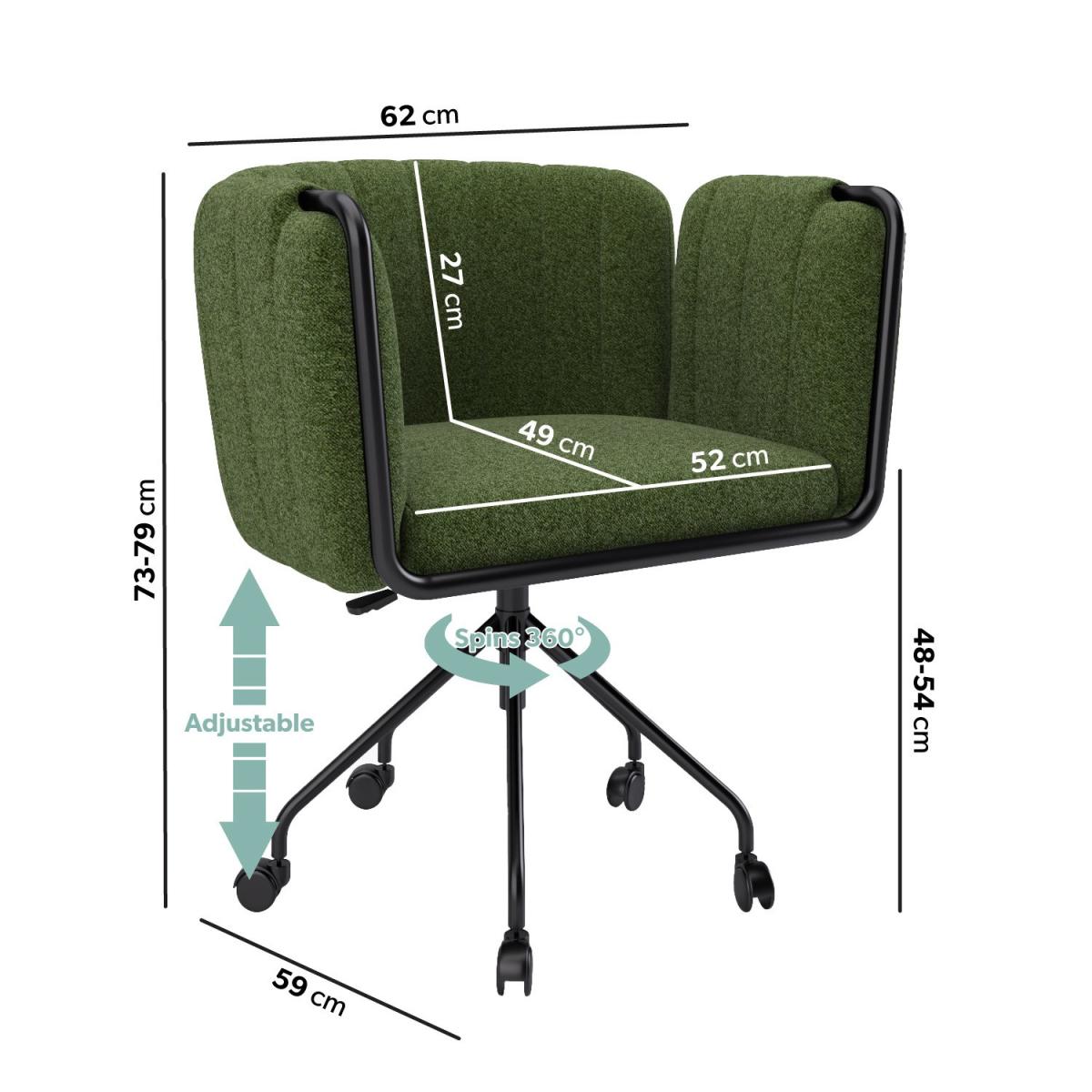 All about me. Add the perfect finishing touch to your home office with this Orlaa tub-style desk chair. It makes a great focal point thanks to the textured and ribbed upholstery and contrasting black outline frame. The curved back and arms combined with the padded seat and back offer ultimate comfort while you work. Made of iron and strong plywood it’s super durable too. Need to know. Dimensions. W62 x D60 x H73-79 cm Seat height. 48-54cm Weight. 11.75kg Max weight limit. 150kg Colour. Olive green Finish. Upholstered Material. Iron plywood foam (filling) and fabric (upholstery) For use. Indoors only Assembly required. Yes just the base.